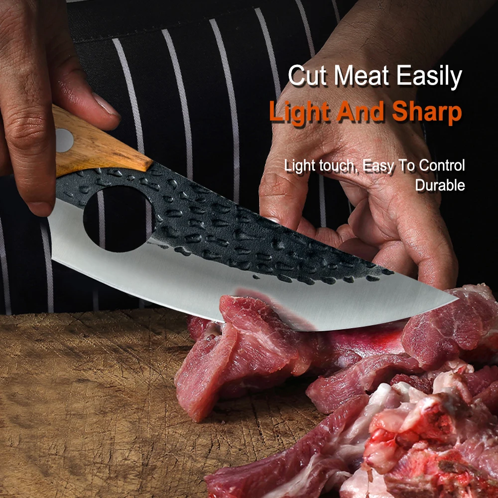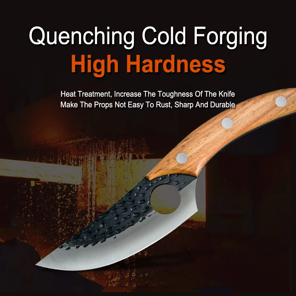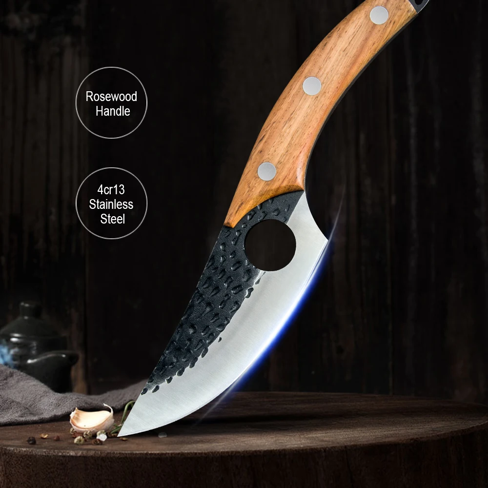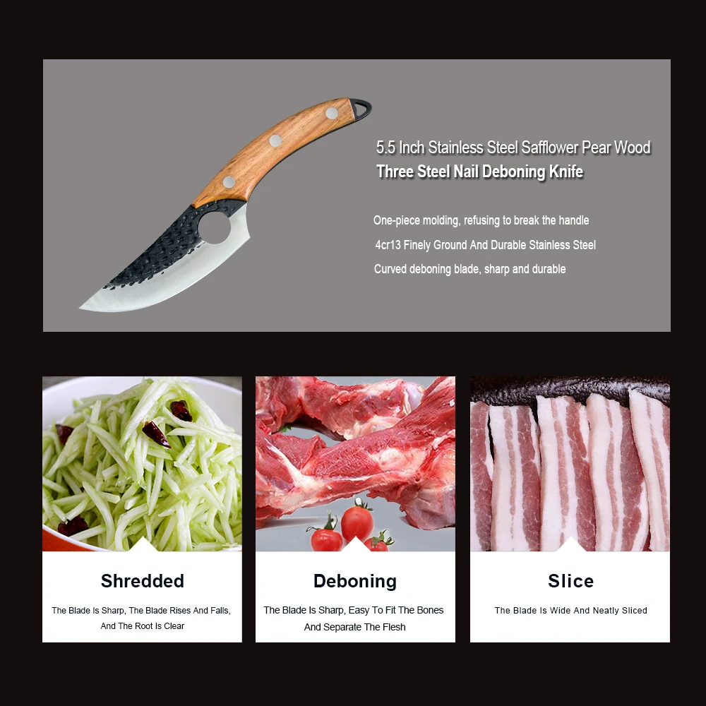 XYj кухонный гаджет, инструмент, 5,5 дюймов, нержавеющая сталь, нож для мясника, для костей, с деревянной ручкой, молоток, лезвие с узором, сербский нож