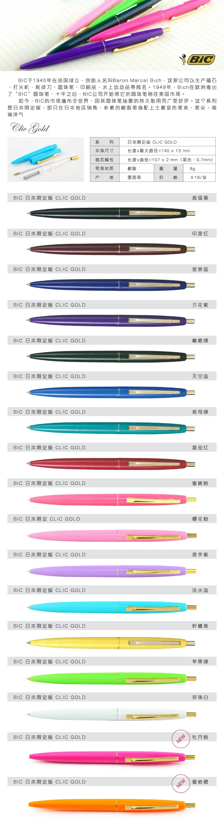 Японская Ограниченная серия BIC Классическая цветная шариковая ручка CLIC GOLD 0,7 мм шариковая ручка 1 шт.
