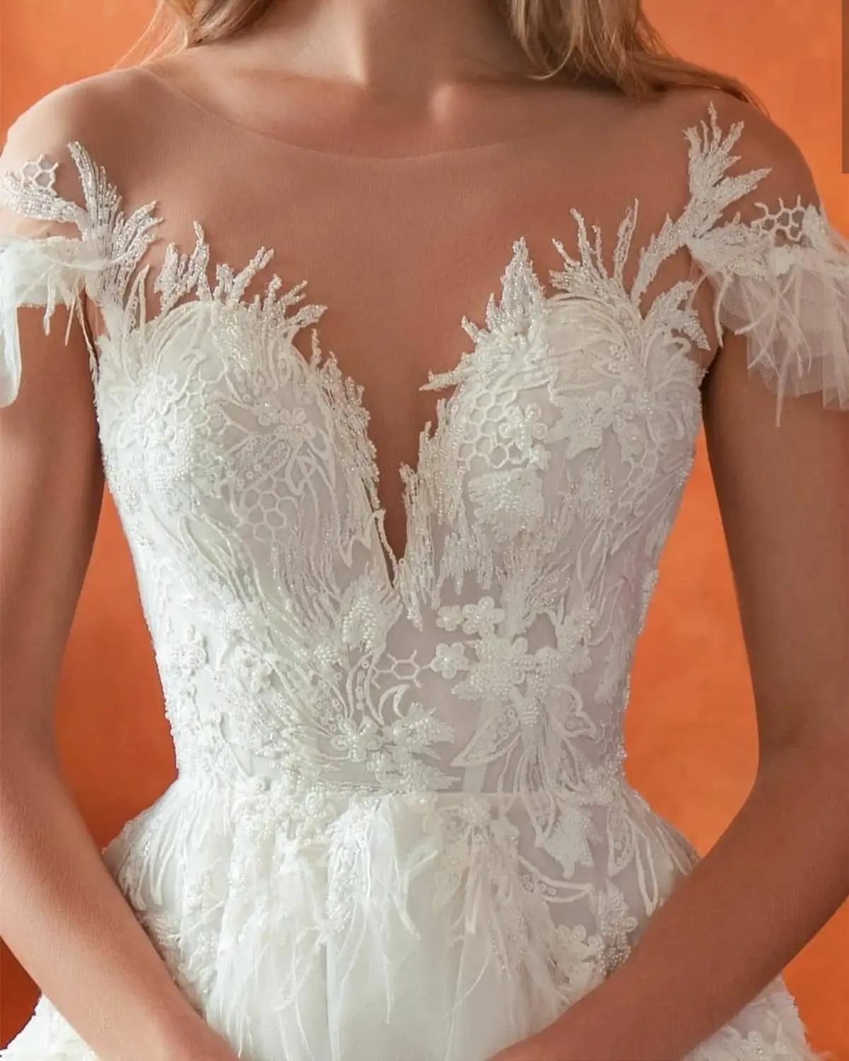 2021 свадебное платье с перьями, с открытой спиной, с рукавом-крылышком, в пол, великолепные свадебные платья, со шлейфом, высокое качество