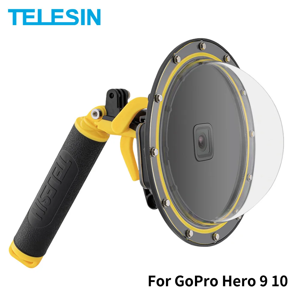 Купольный чехол TELESIN 6 Дюймов, 30 м, водонепроницаемый, с плавающей ручкой, для GoPro Hero 9 10, черного цвета