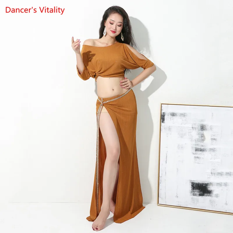 Костюм-тройка женский для танца живота, элегантный топ с блестками и длинная юбка со стразами