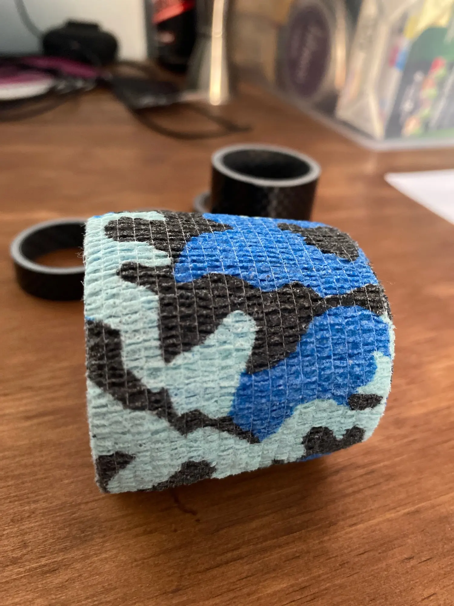 Прикольная ,эластичная лента.Сама к себе липнет ,а так вроде не липкая.Можно использовать как эластичный бинт при растяжениях.