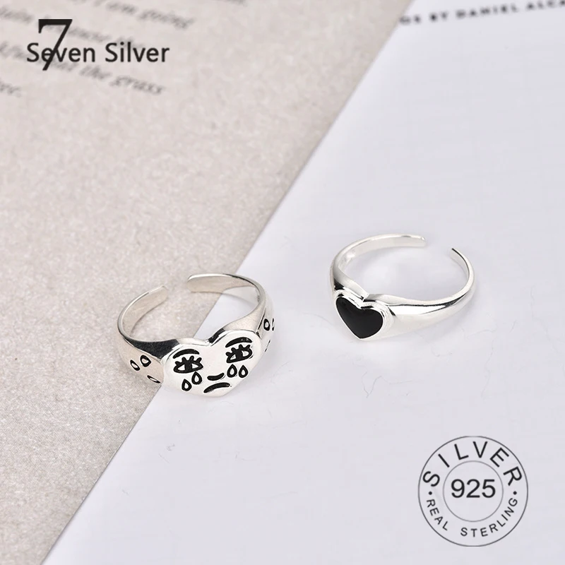 925 пробы, серебряные кольца для женщин, крик, лицо, Винтаж, тонкая желеобразная многослойная открытая Регулируемая модная серебряная бижутерия вечерние подарки