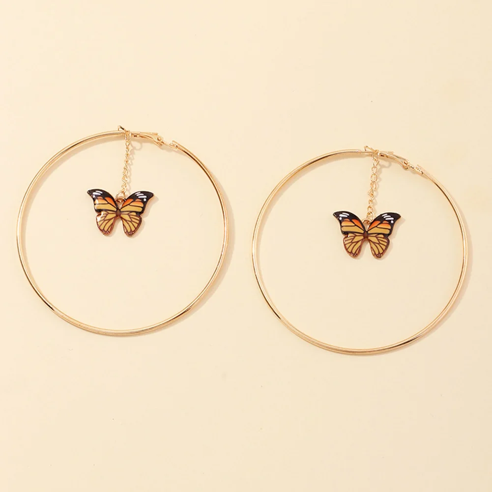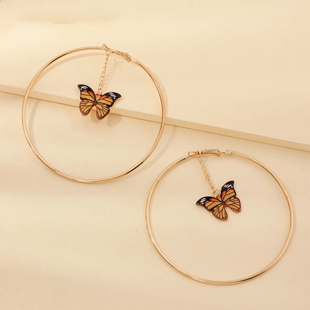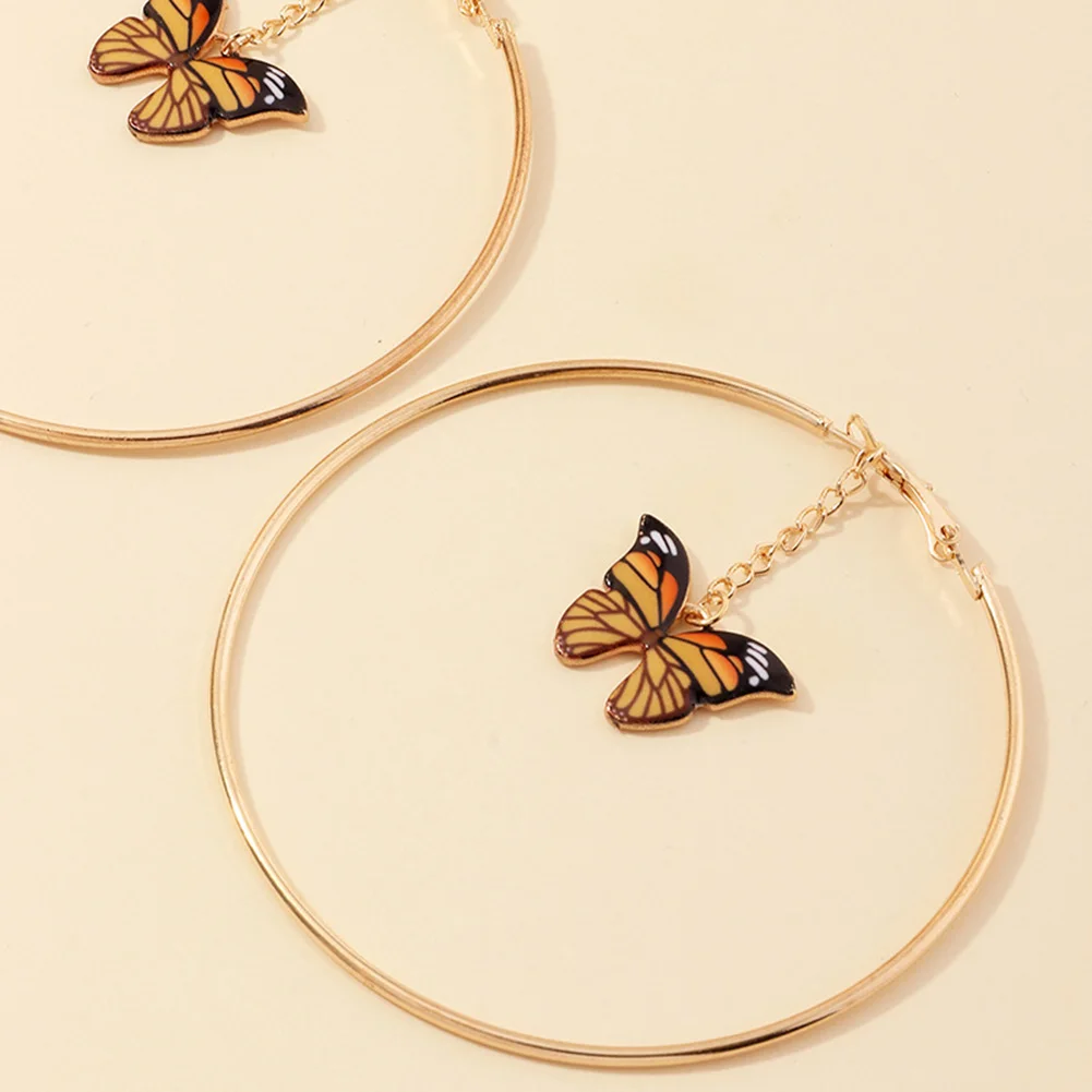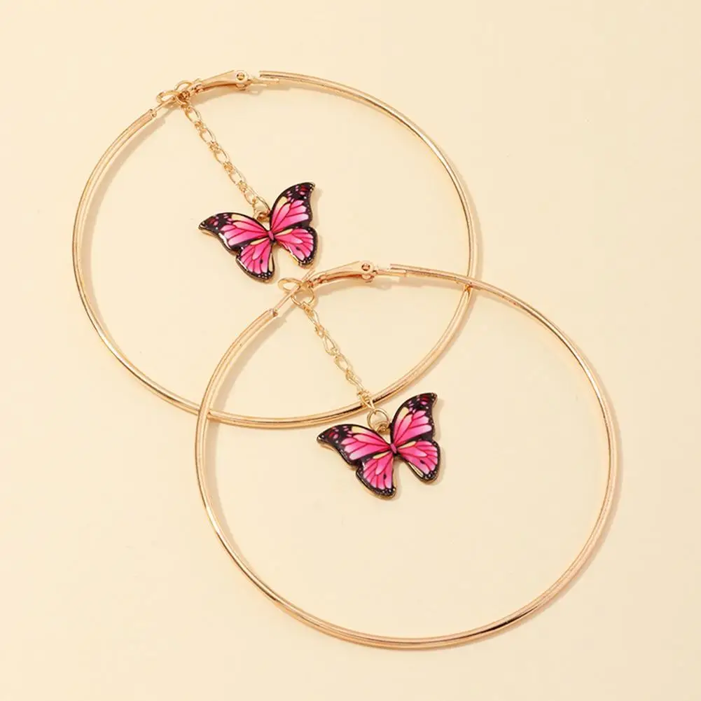 Женские Висячие серьги-кольца, Элегантные ювелирные украшения для вечеринок с цепочкой и бабочкой, подарочные украшения для вечерние Ринок