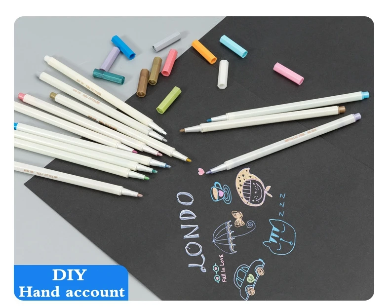 Маркеры для творчества сделай сам, 61012 цветов, металлик, круглаямягкая ручка для рисования, скрапбукинга, поделок, открыток, канцелярские товары