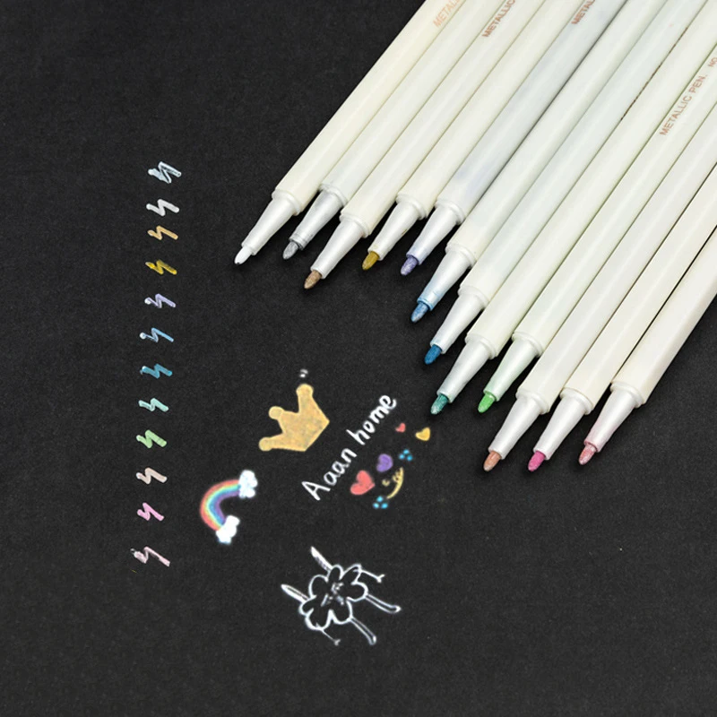 -Металлические маркеры: чернила на водной основе, Перманентный маркер и водонепроницаемость, нетоксичные чернила, работает практически на любой поверхности-металл, керамика, дерево, альбом для скрапбукинга, резина, стекло, пластик, камень и многое другое...-Металлические маркеры: Маркеры цвета "металлик" Упаковка из 10 шт. ручки принадлежности для скрапбукинга цветные карандаши "сделай сам" для Альбом для скрапбукинга использовать по любым поверхностям жидкости металлические маркеры в разные цвета, идеально подходит для скрапбукинга и изготовления карт эти металлические ручки имеют хороший эффект на все виды оттенков бумаги, особенно хорошо для черной жесткой картыРазмер: 6 цветов (коробка) Размер: 150 мм * 142 мм12 цветов (коробка) Размер: 150 мм * 90 мм12 различных цветов в 1 посылка, включая золото, серебро, коричневый, синий, розовый, белый, черный, фиолетовый, темно-зеленый, светильник зеленый-Высококачественные металлические цветные ручки: быстрое высыхание не промазывает и не проливается через бумагу и не выцветает. Отлично работает на темных поверхностях, Цвет ed бумага и принадлежности для скрапбукинга Маркеры цвета "металлик", супер гладкая Применение, отличная Цвет s, безусловно, богатый металлический Цвет, маркеры цвета "металлик" добавляет образу особой Гладкий Блеск домашние открытки ремесла жидкости металлические маркеры в разных цветах, идеально подходит для записки и ремесло изготовления открыток