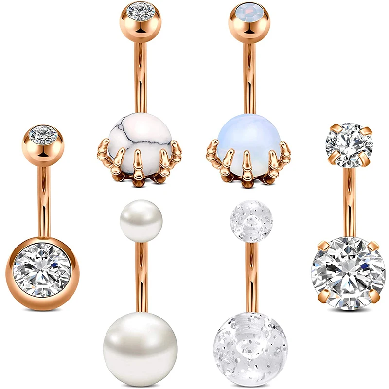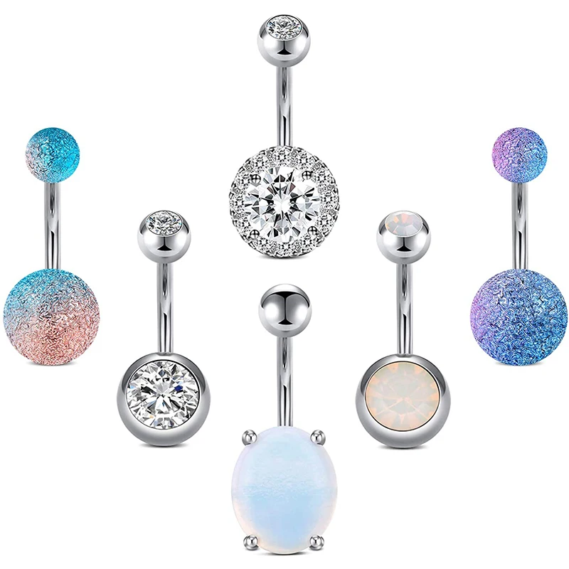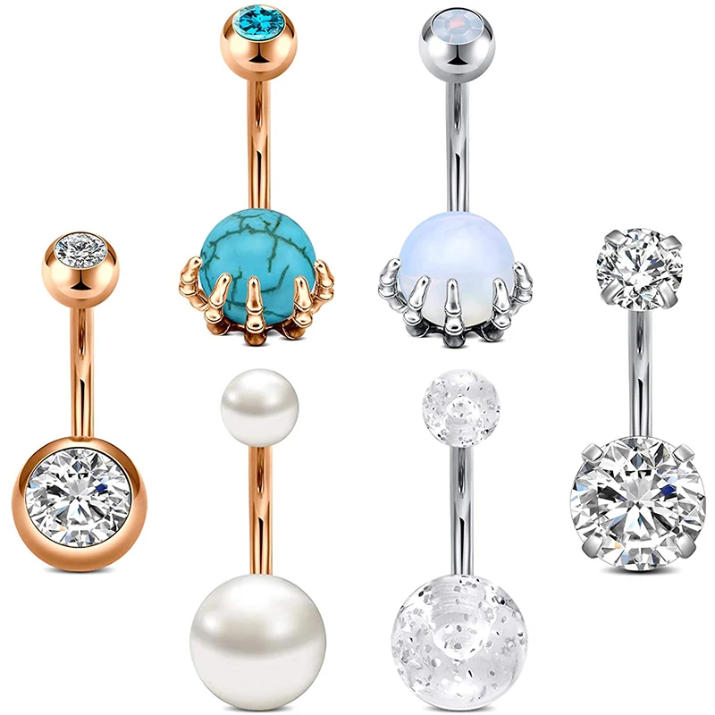 Кольцо на пупок из нержавеющей стали, 14 г, с опалом, жемчугом и мрамором, гипоаллергенное пирсинг для пупка, ювелирные изделия для женщин и девушек, 10 мм