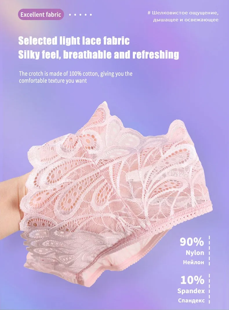 Трусы женские кружевные прозрачные с низкой талией, 3 шт.