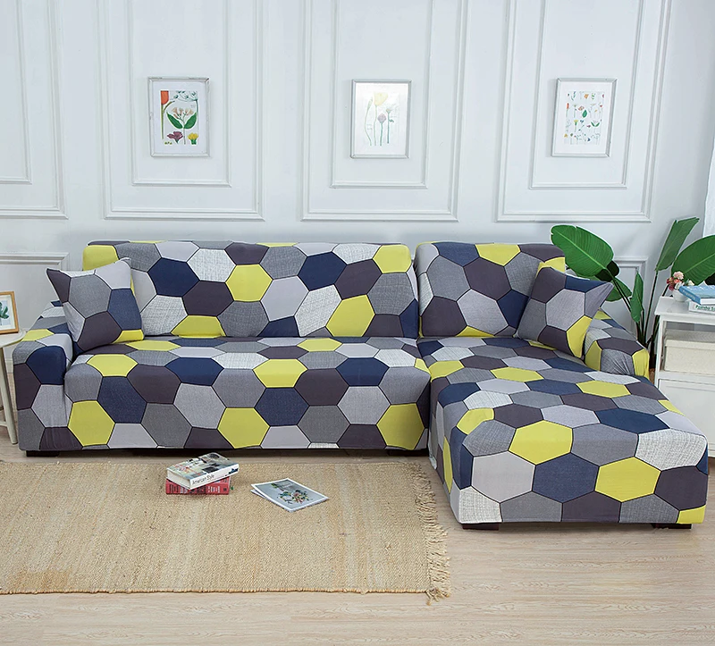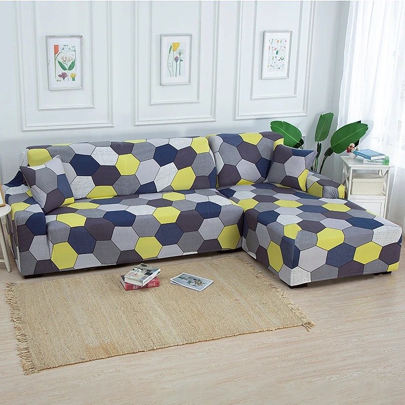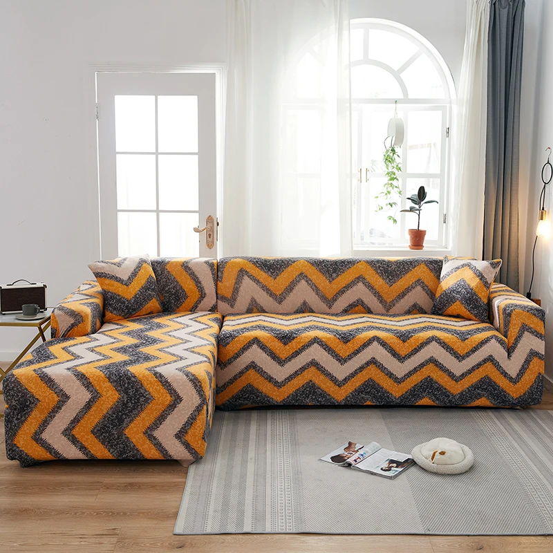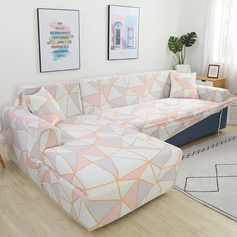 Комплект эластичных покрытий для дивана, геометрический секционный L-образный эластичный протектор для мебели из полиэстера, с защитой от пыли, для гостиной