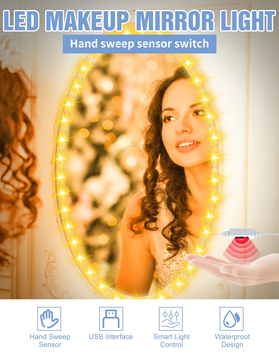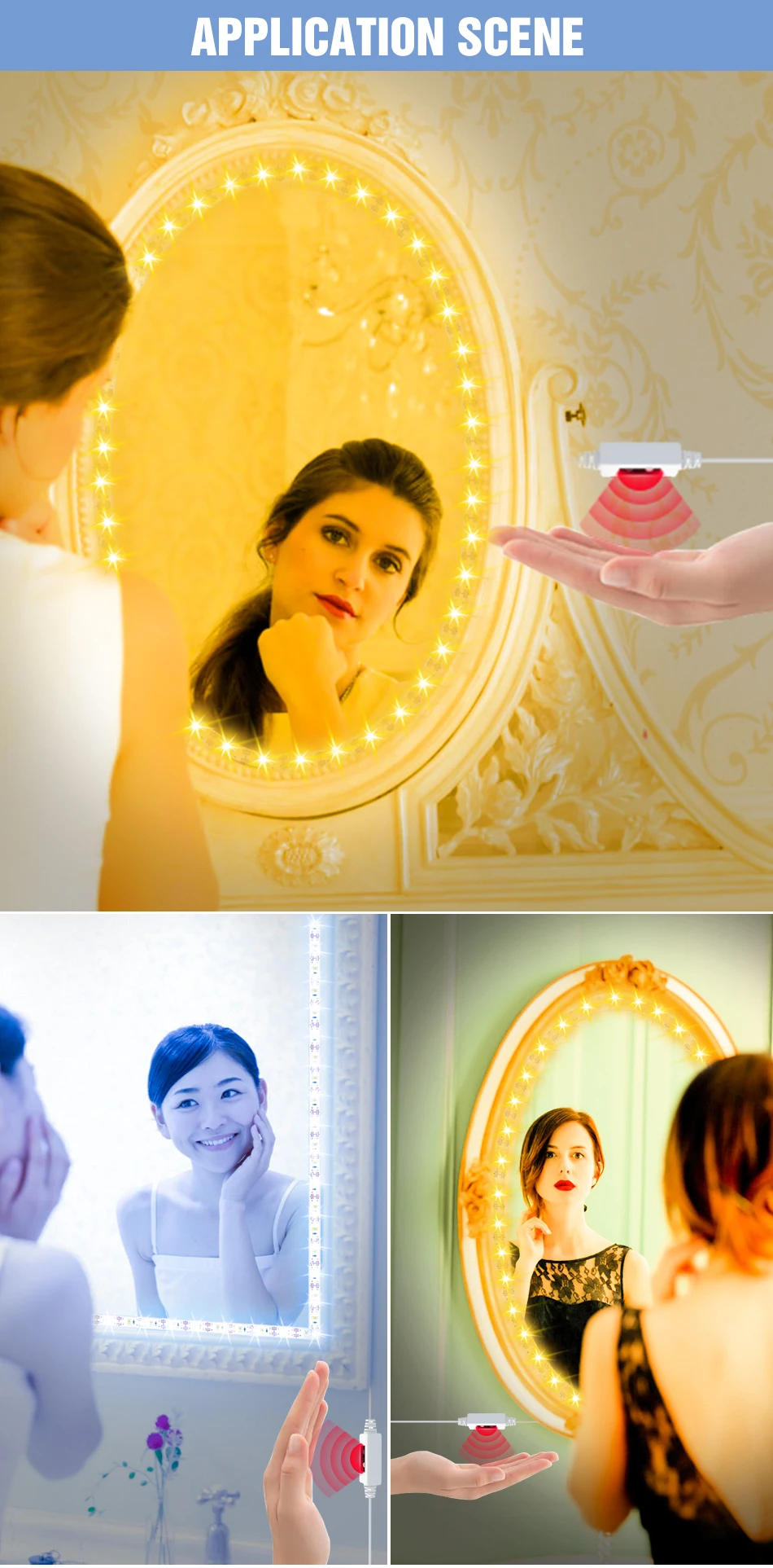 Приглушаемая Светодиодная лампа для зеркала с датчиком движения рук, приглушаемый водонепроницаемый светильник для косметики с USB, туалетный столик, лампа для макияжа, 5 м