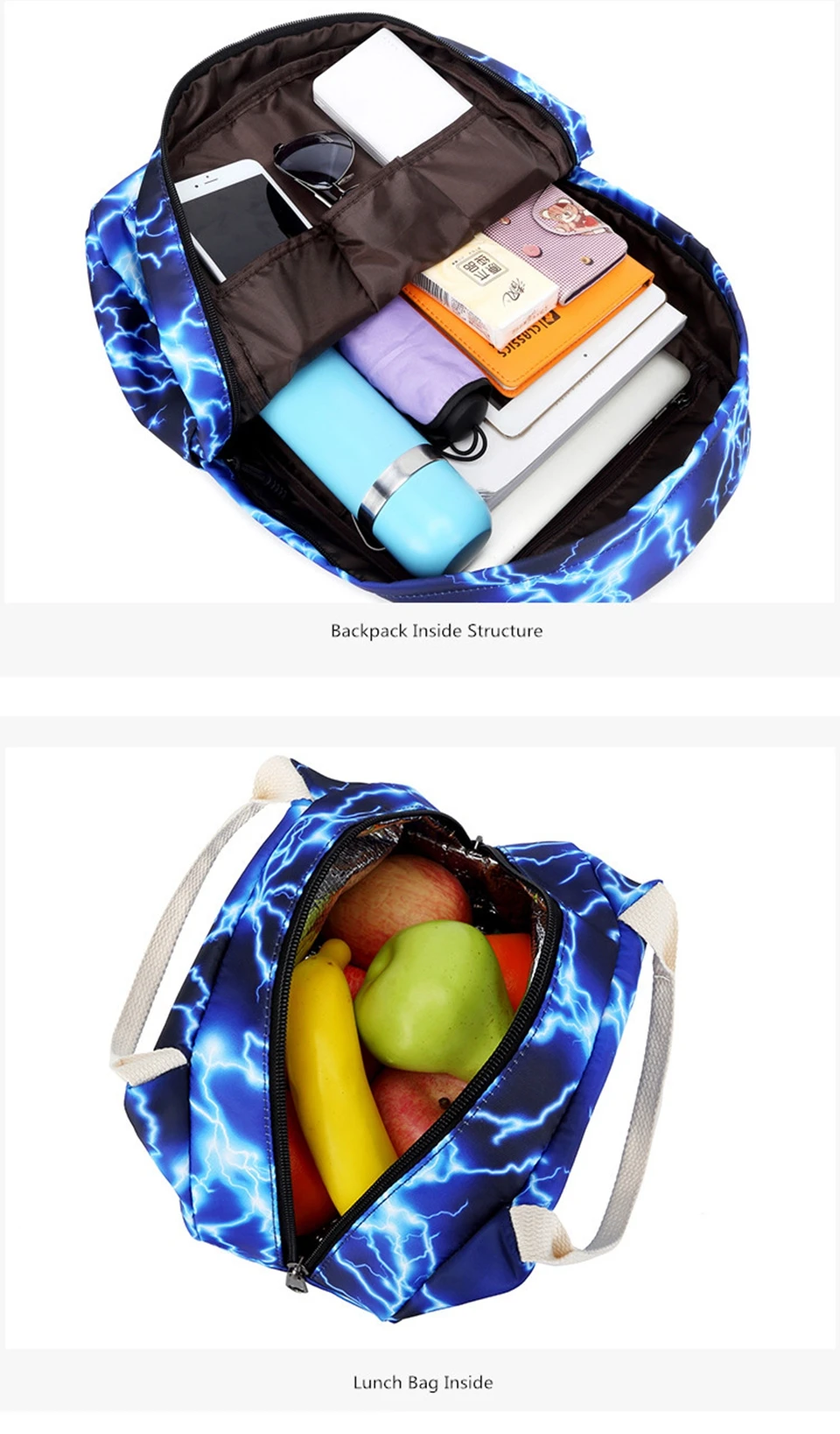 Ланч-мешок изолирован двойной молнией для легкого доступа, можно положить два ланч-бокса, напитки и фрукты внутри. Один внешний карман для карт, мобильного телефона, ключей и других мелких вещей
