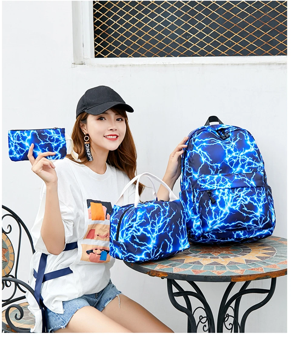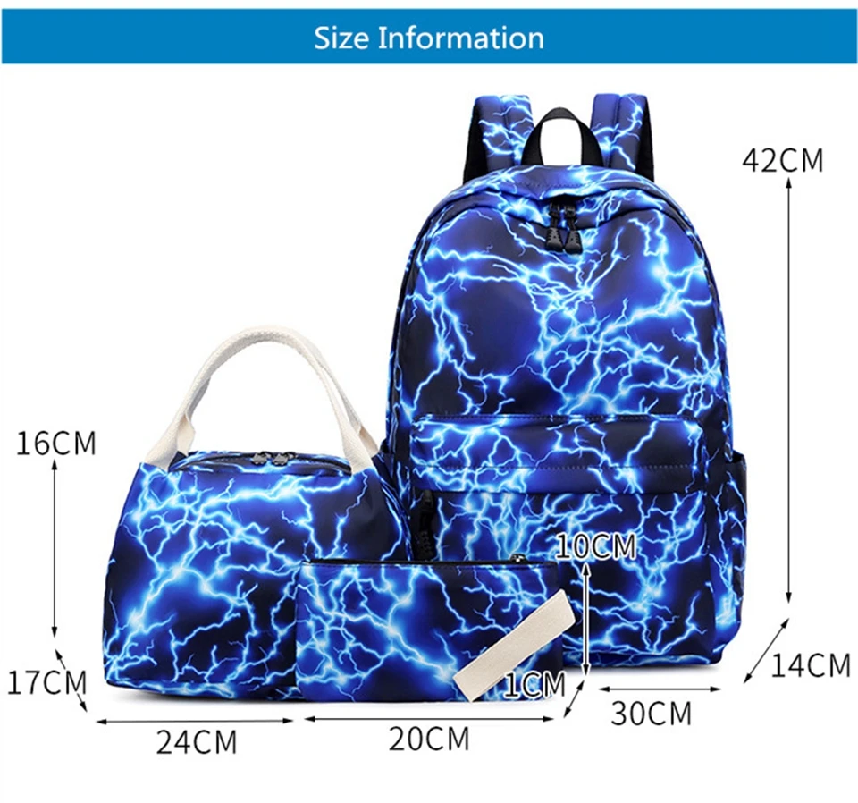 3 шт. (1 * школьная сумка + 1 * Ланч-бокс + 1 * кошелек)