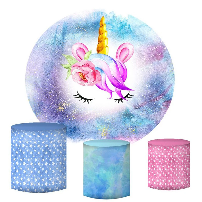 Синяя фиолетовая стена Золотой Единорог Вечеринка фон для фотографии детский душ вечеринка Декор торт стол Баннер день рождения Круглый фон
