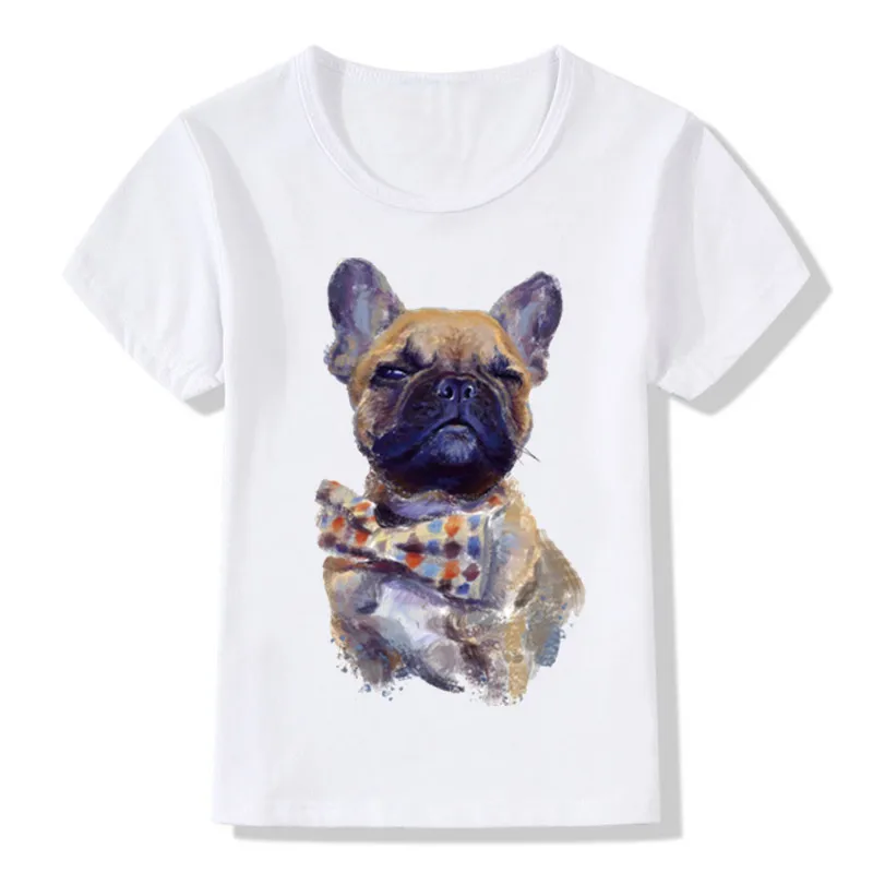 Детские летние футболки, с принтом в виде французского бульдога, ooo2038, 2019