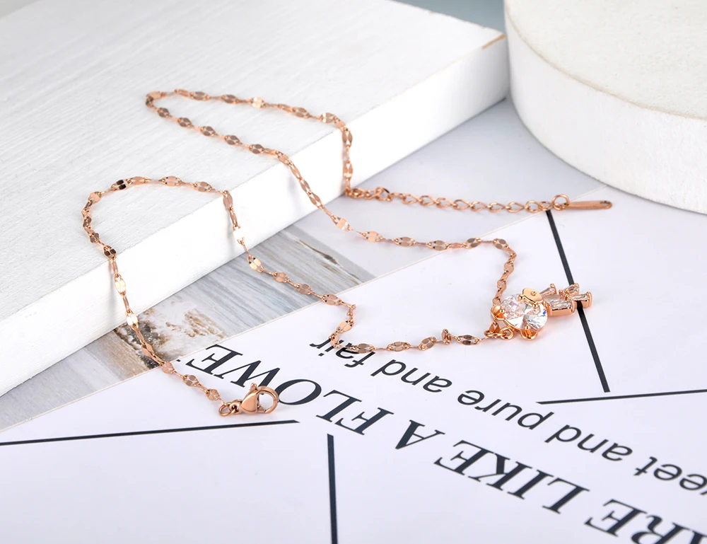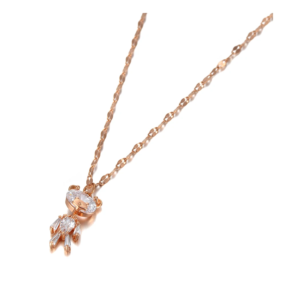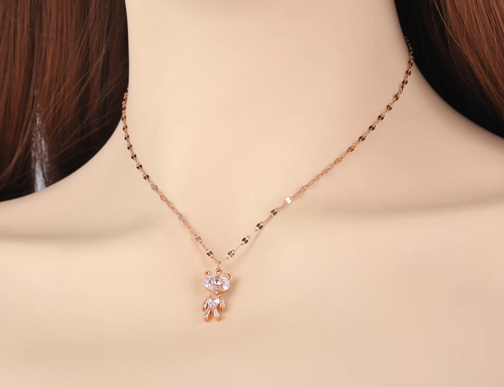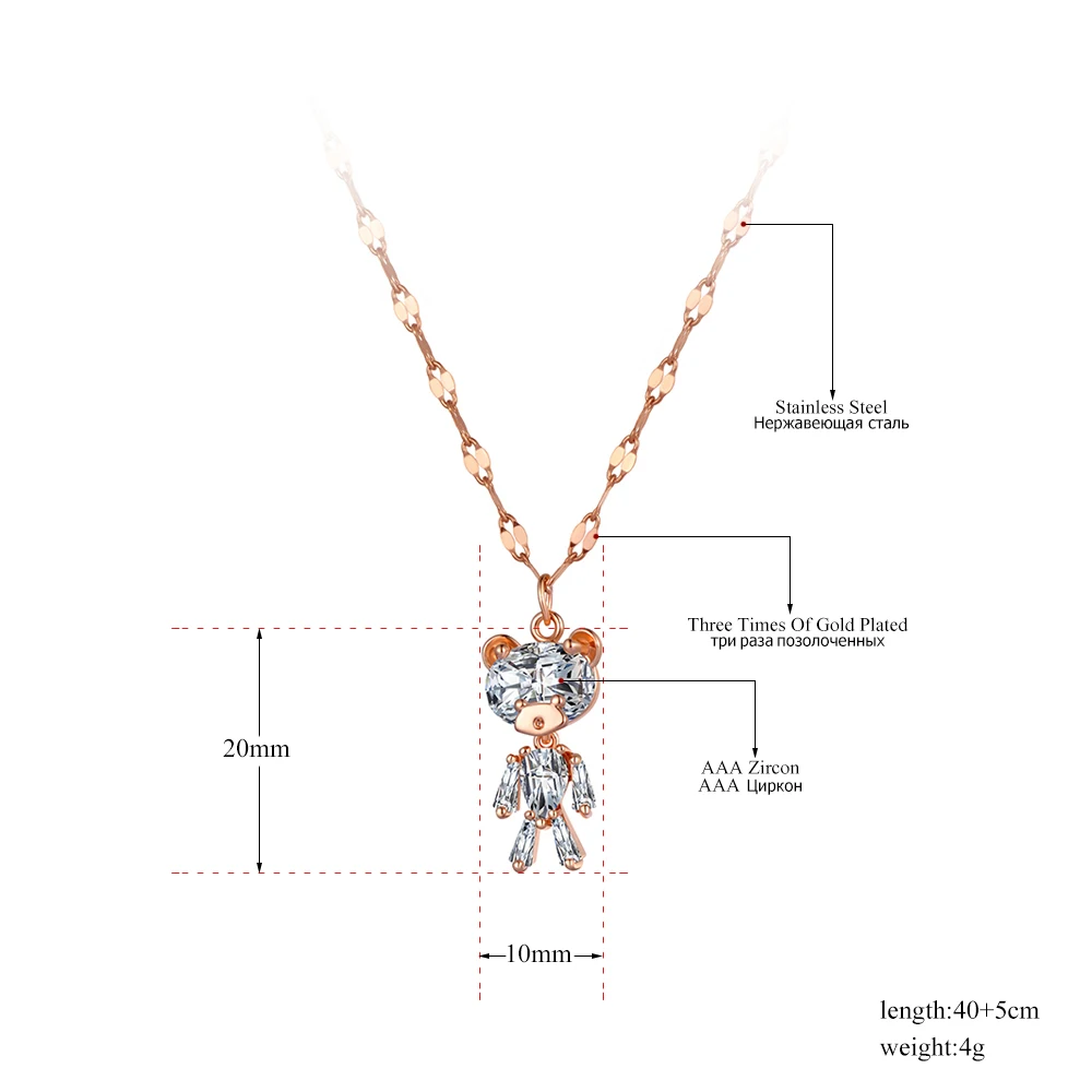 Модный офисный чокер Lokaer N20211 из нержавеющей стали, изящное ожерелье с подвеской в виде медведя из кристалла цвета розового золота для вечеринок