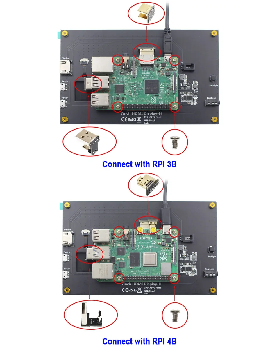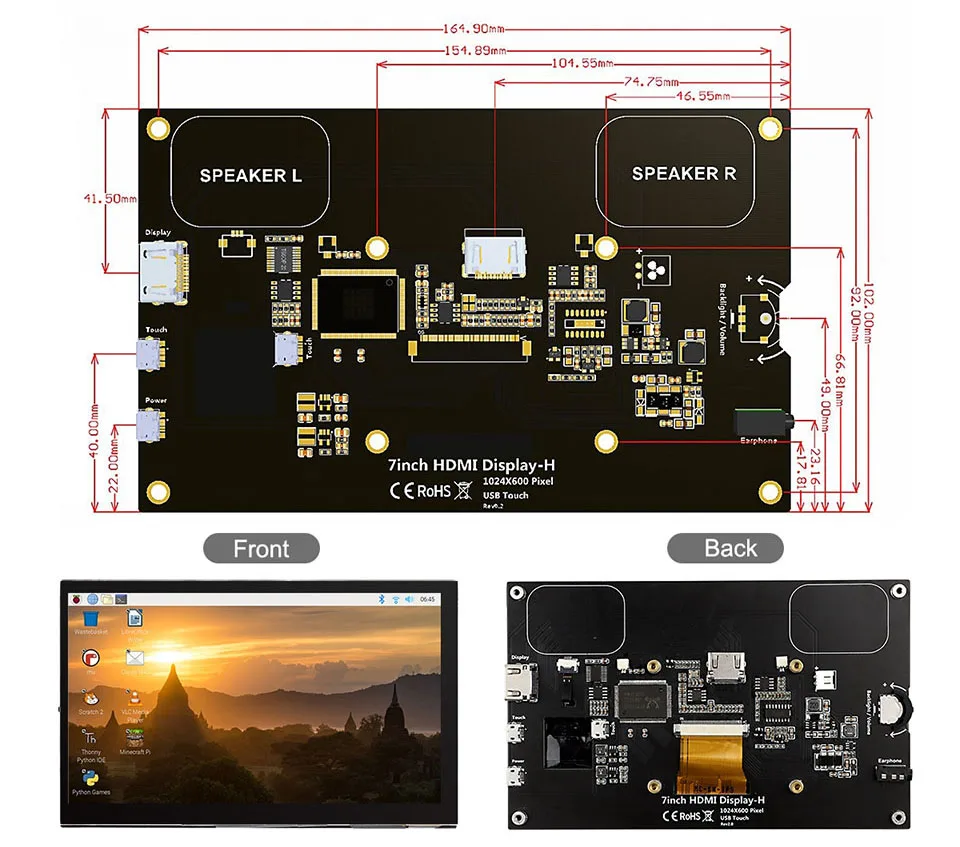 Простое подключение к RPI 4BУгол обзора 170 градусов5-ти точечные ёмкостный сенсорный дисплей HDMIДвойные съемные аудио колонки, чтобы добавить больше удовольствия в вашу жизньС двумя pro подставкой, легко поддерживает монитор
