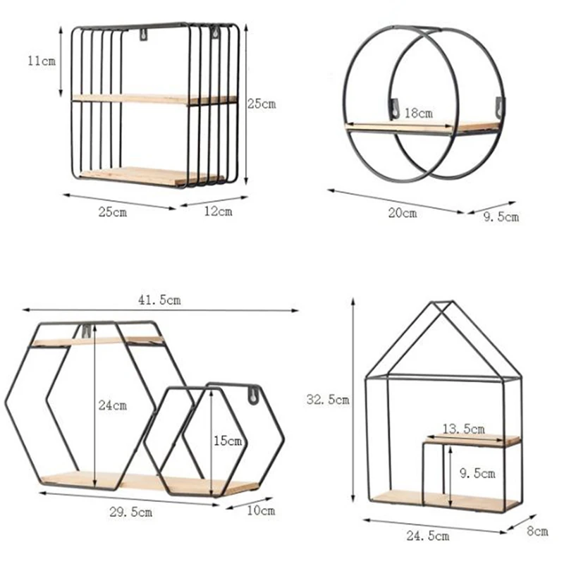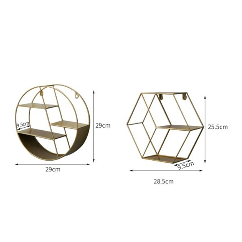 Настенная железная полка, креативное искусство, подвесное украшение, практичный держатель, круглая шестиугольная полка для хранения, украшение для дома, гостиной, спальни