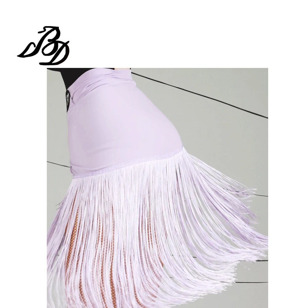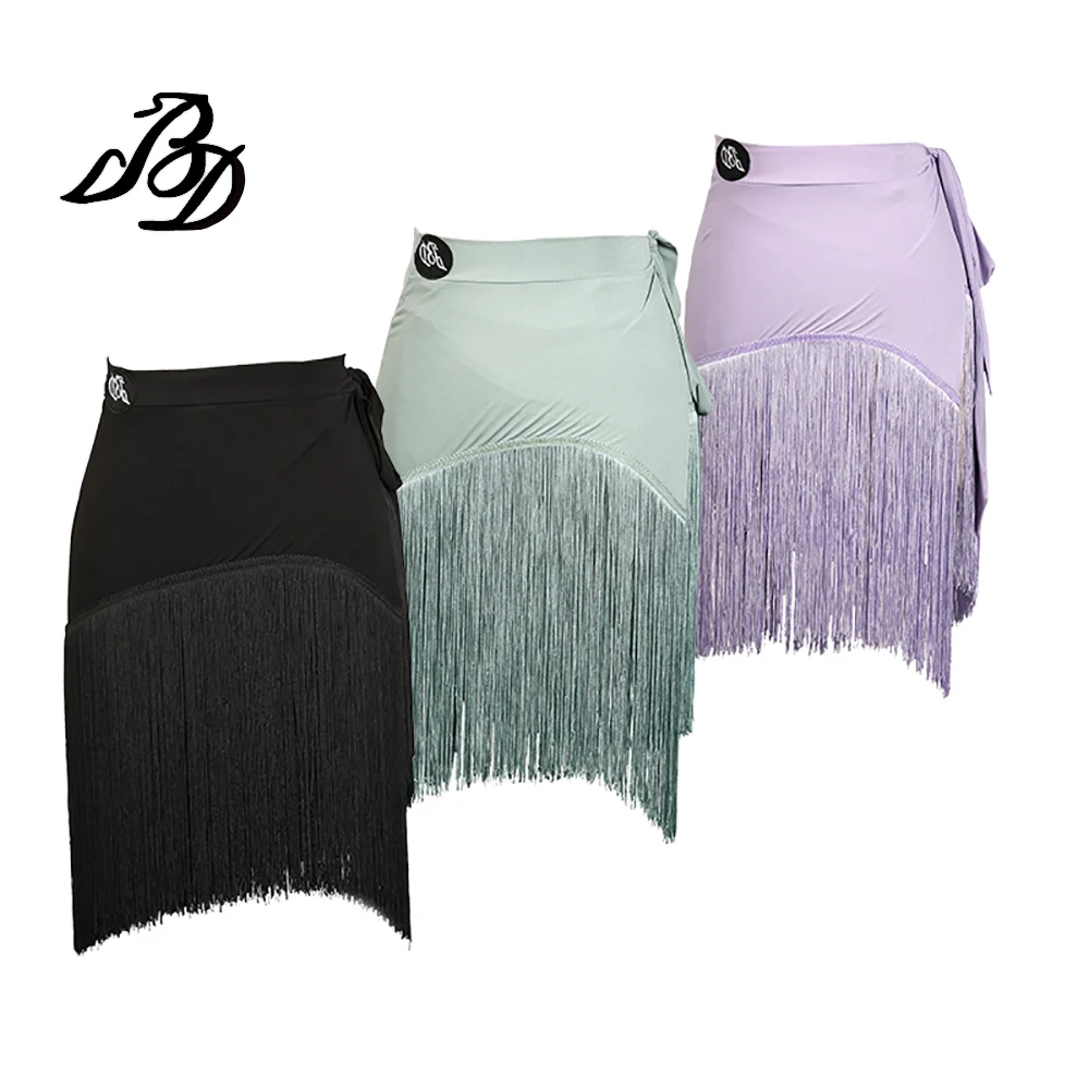 Юбка для латинских танцев Женская одежда для занятий латинскими танцами женский танцевальный костюм юбка с бахромой кружевная Сексуальная Клубная одежда BD04