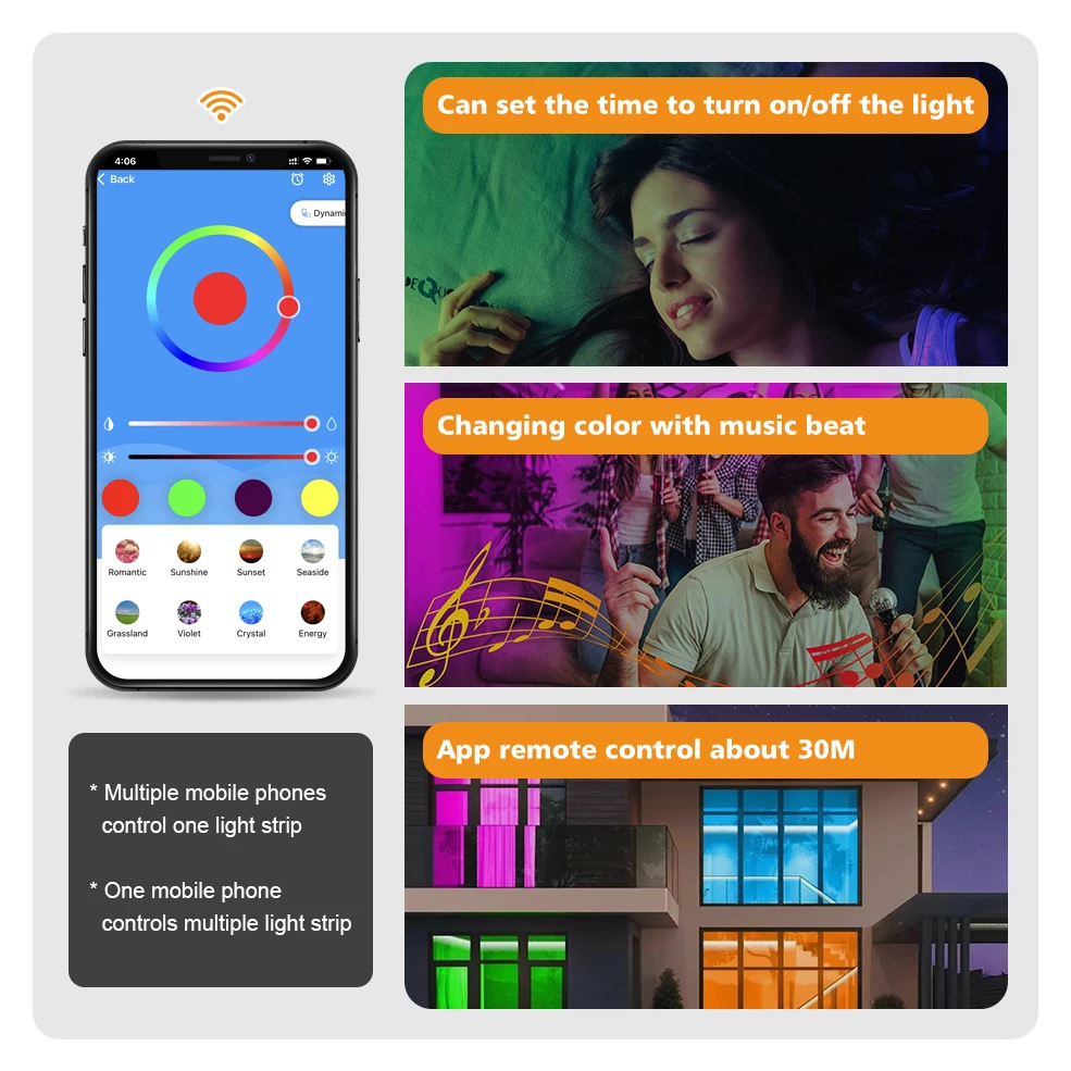 6. Удаленное управление, вы можете управлять светодиодный полоской, когда и где угодно через приложение в 2G/3G/4G/WIFI сети.