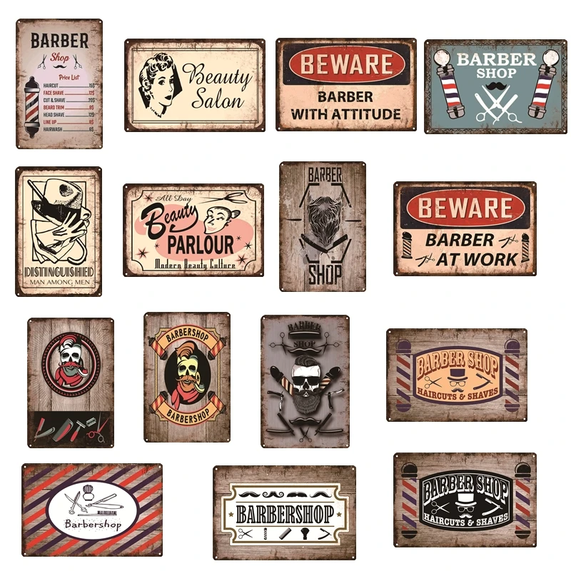 Металлическая вывеска для парикмахера, металлическая винтажная жестяная вывеска, ретро вывески для парикмахерской, Настенный декор, железная живопись, металлическая Настенная картина, декор для парикмахера