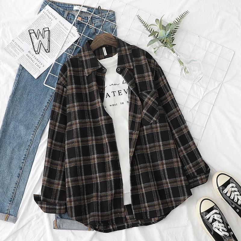 Женская клетчатая блузка с длинным рукавом, Повседневная Свободная рубашка с принтом, верхняя одежда в клетку, весна 2022