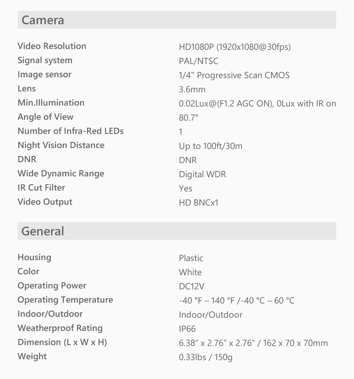 Этот тип камеры является TVI камерой, прежде чем выбрать товар, пожалуйста, подтвердите, что ваш видеорегистратор поддерживает подключение TVI камеры во-первых. Если вы не уверены, пожалуйста, свяжитесь с нами напрямую. Спасибо за понимание.