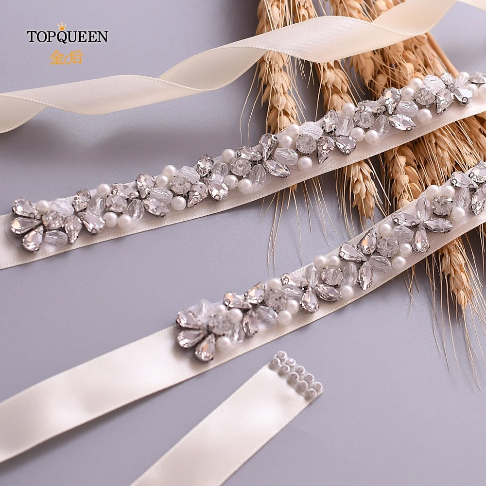TOPQUEEN S387 тонкий женский пояс розового золота, свадебный пояс, стразы, атласный пояс, жемчужные пояса, пояс с жемчужинами для свадебного платья