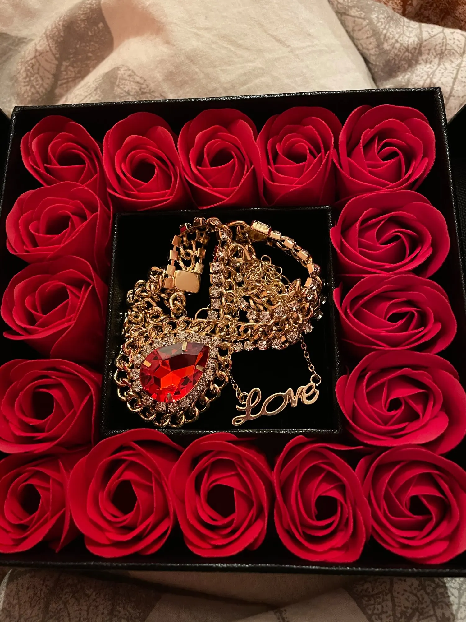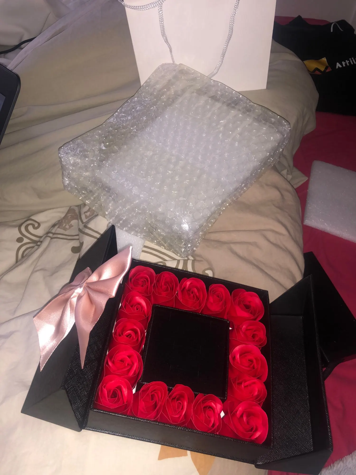 Очень красивый подарок, я так рад, что получил этот подарок вовремя, через 10 дней, и когда я открывал коробку, я могу понюхать розы, бант на коробке с магнитом, мне очень понравились эти детали, я неверно рекомендую этому продавцу