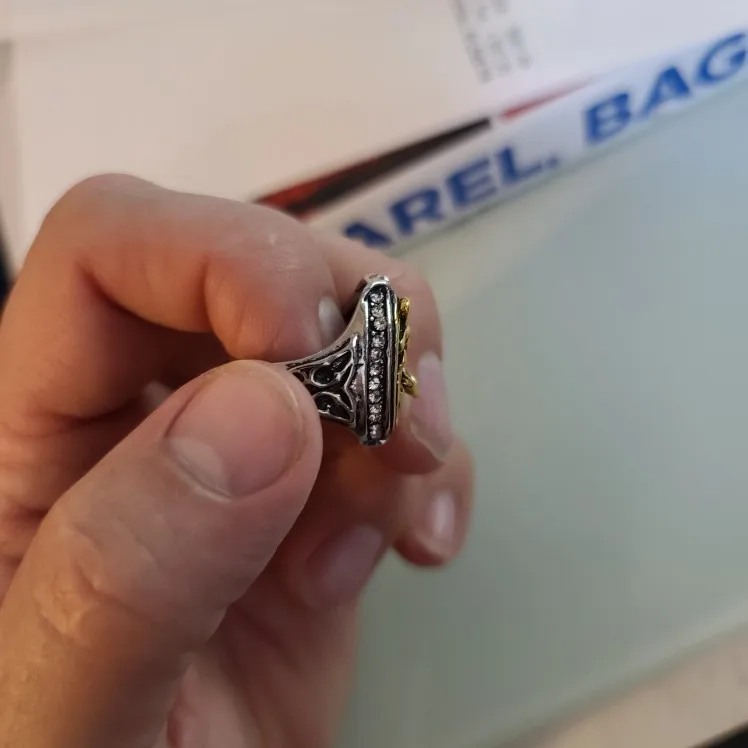 Винтажное высококачественное металлическое кольцо с черным Цирконом...