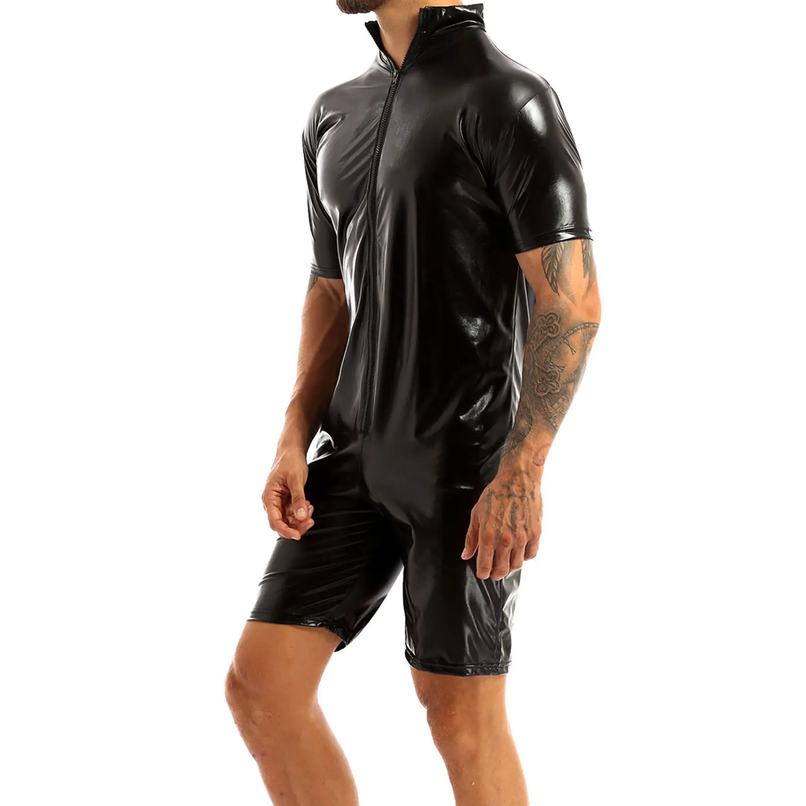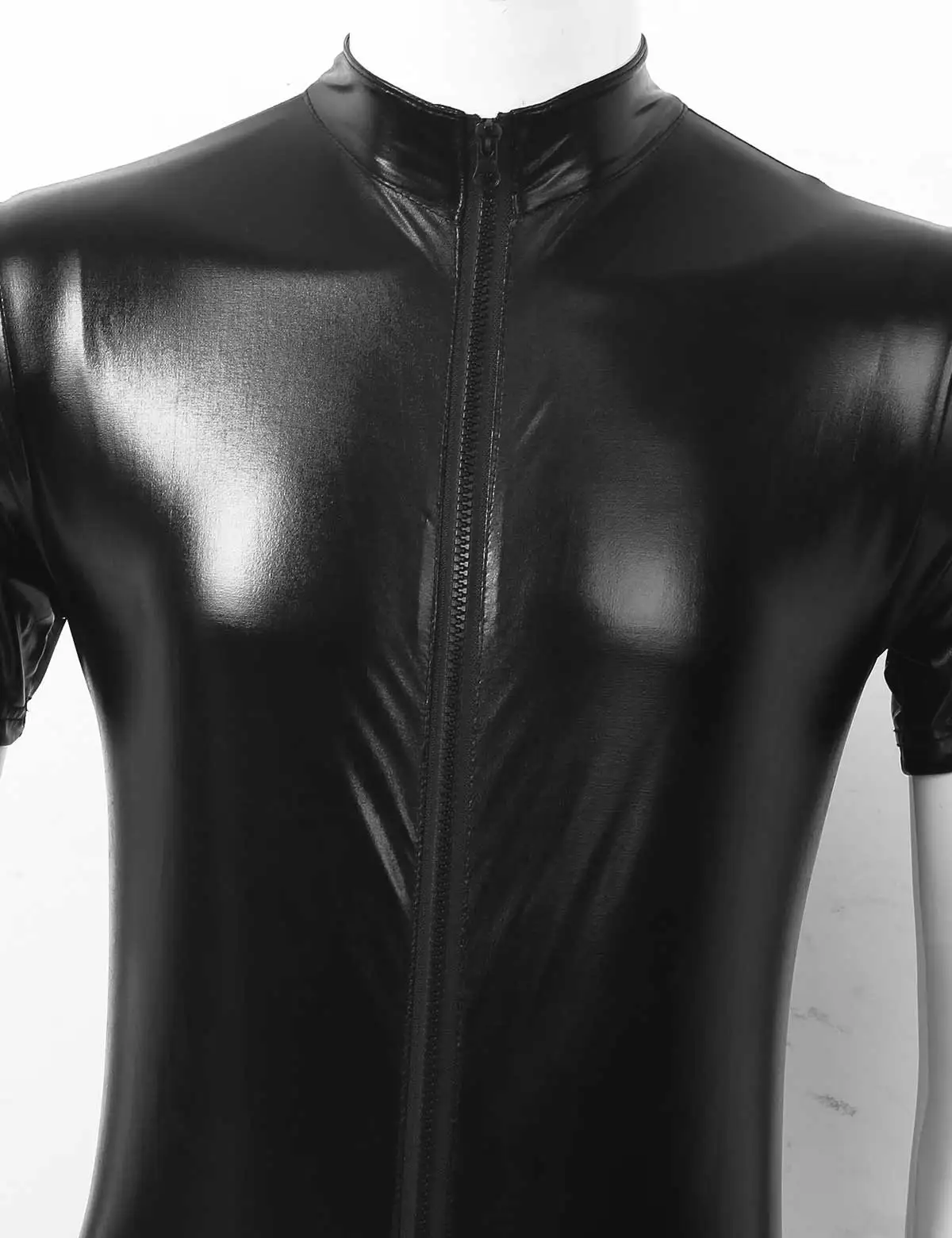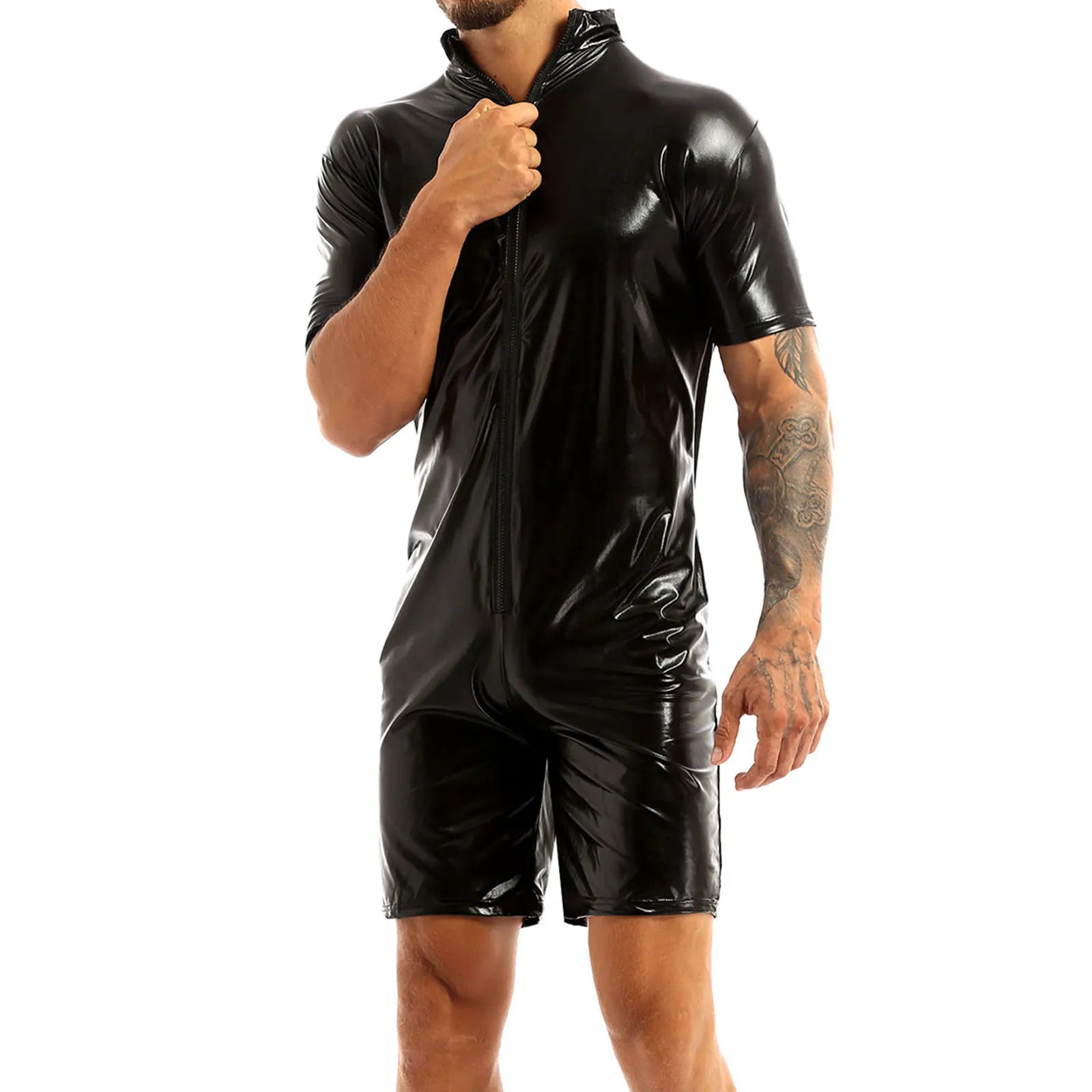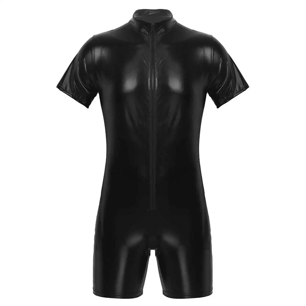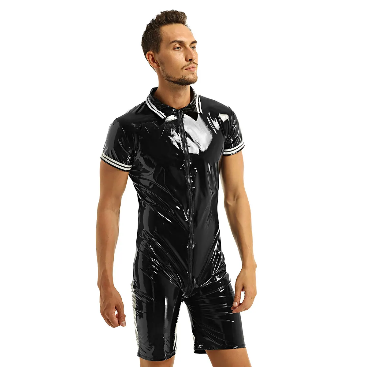 Сексуальное латексное нижнее белье, боди для мужчин, цельное, мокрое, лакированная кожа, на молнии спереди, трусы-боксеры, трико, боди, одежда для сна