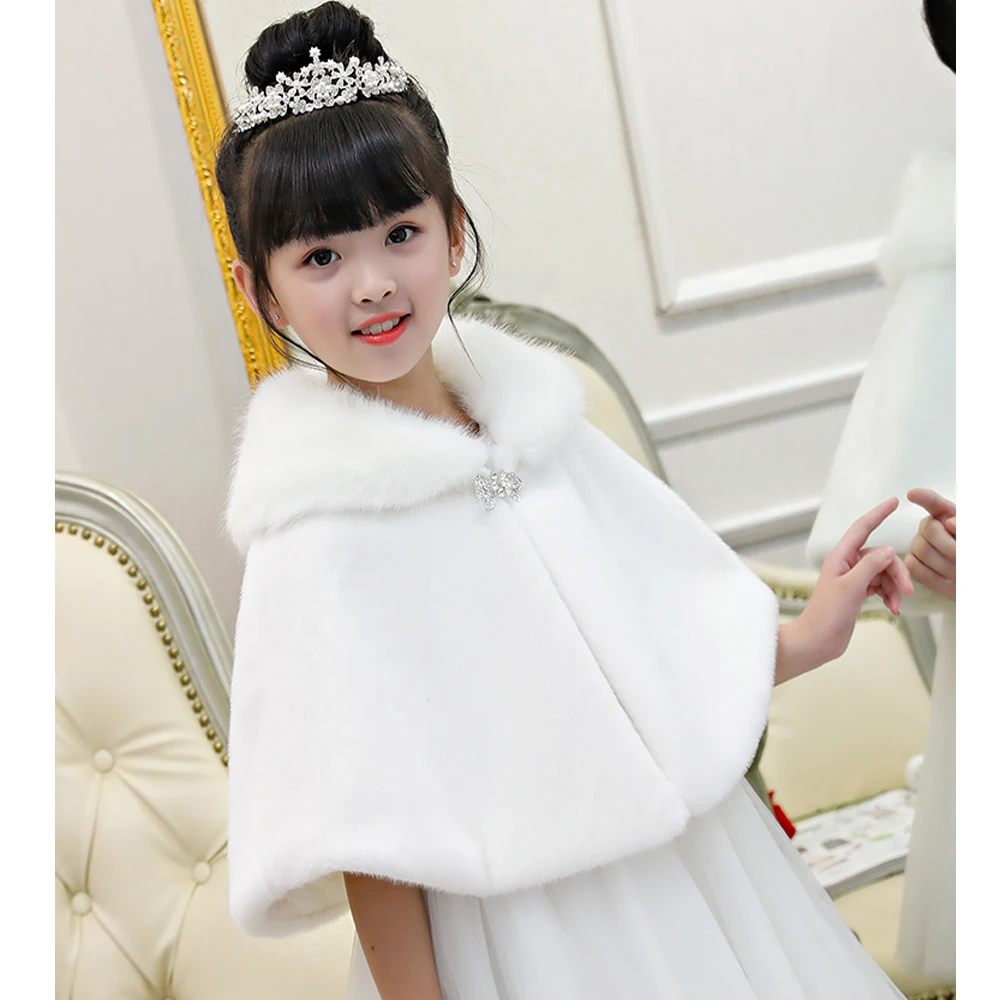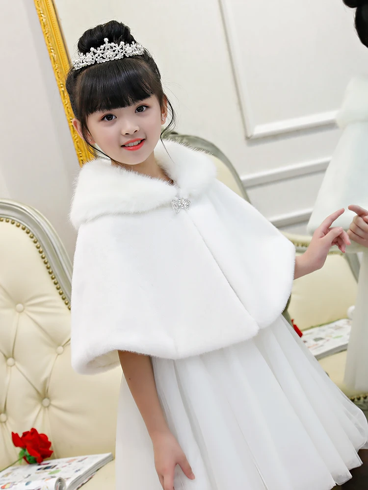 Зимнее короткое пальто с цветочным узором для девочек, болеро из искусственного меха для свадьбы, накидка для вечерние для девочек, шали для детей