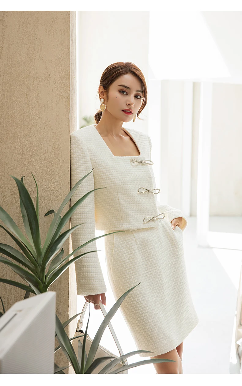 Женское осеннее пальто YIGELILA, твидовое пальто, Элегантный квадратный вырез, короткое пальто для офиса, 91111