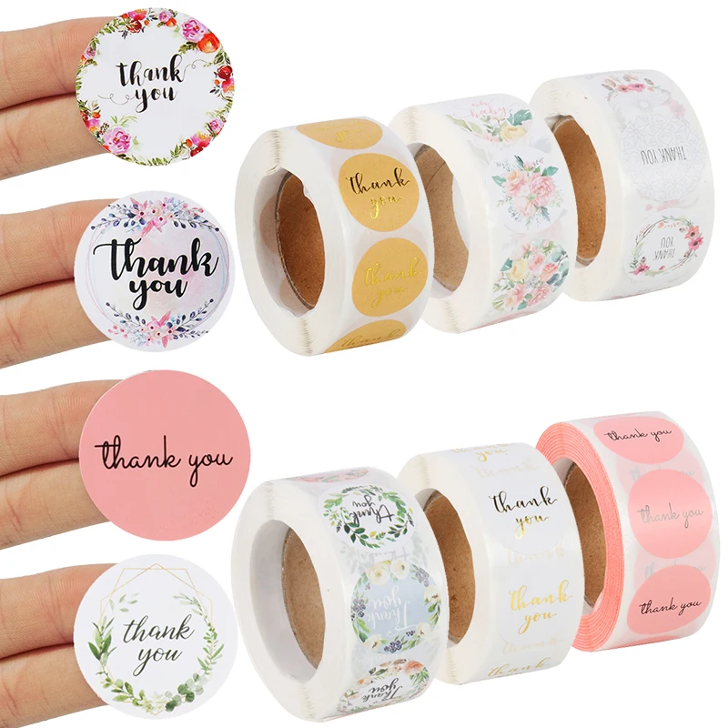 500 шт.рулон, круглые наклейки с надписью Thank You