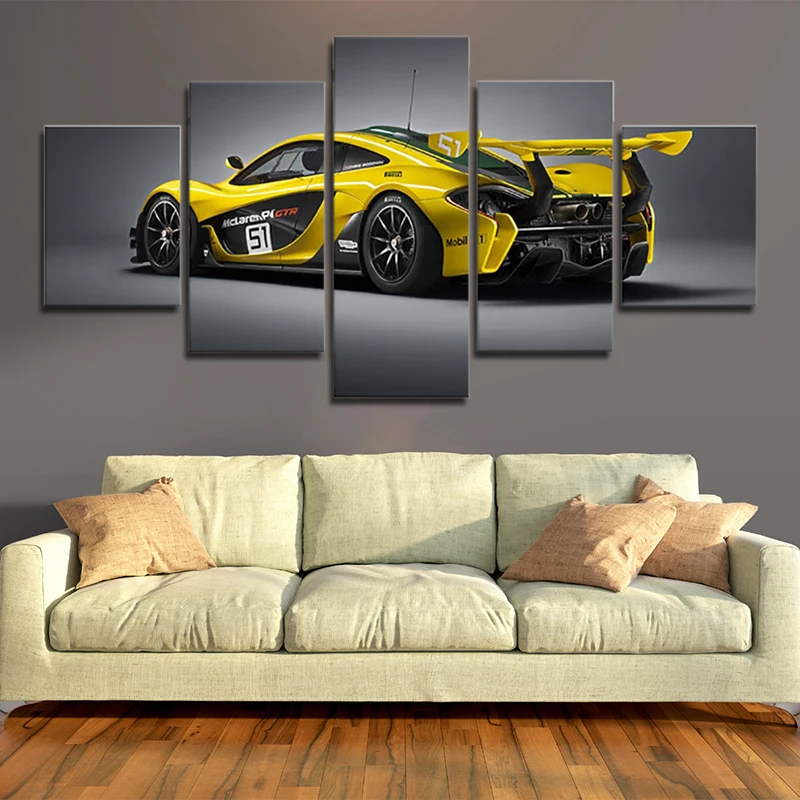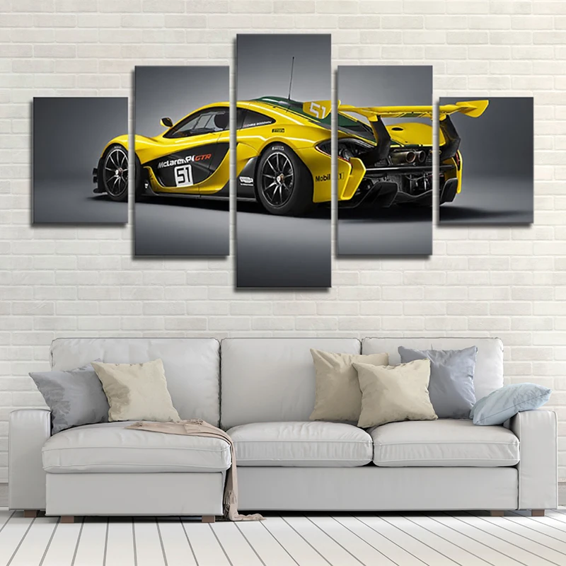 Модульный настенный художественный холст, HD печатная картина, 5 шт., желтый роскошный спортивный автомобиль, картина, постер, гостиная, домашний декор, рамка