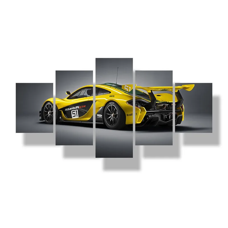 5 Panel Yellow Luxury Sports Car Modular Posters Wall Art Canvas HD...