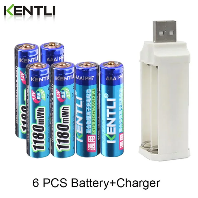 6 шт., перезаряжаемые литий-полимерные литий-ионные аккумуляторы AAA 1,5 В МВтч + 1 умное зарядное устройство USB