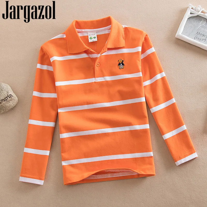 Хлопковая футболка с вышивкой Teenster, костюм для подростков, рубашки поло с длинными рукавами, Детские полосатые топы, спортивные поло для маленьких мальчиков
