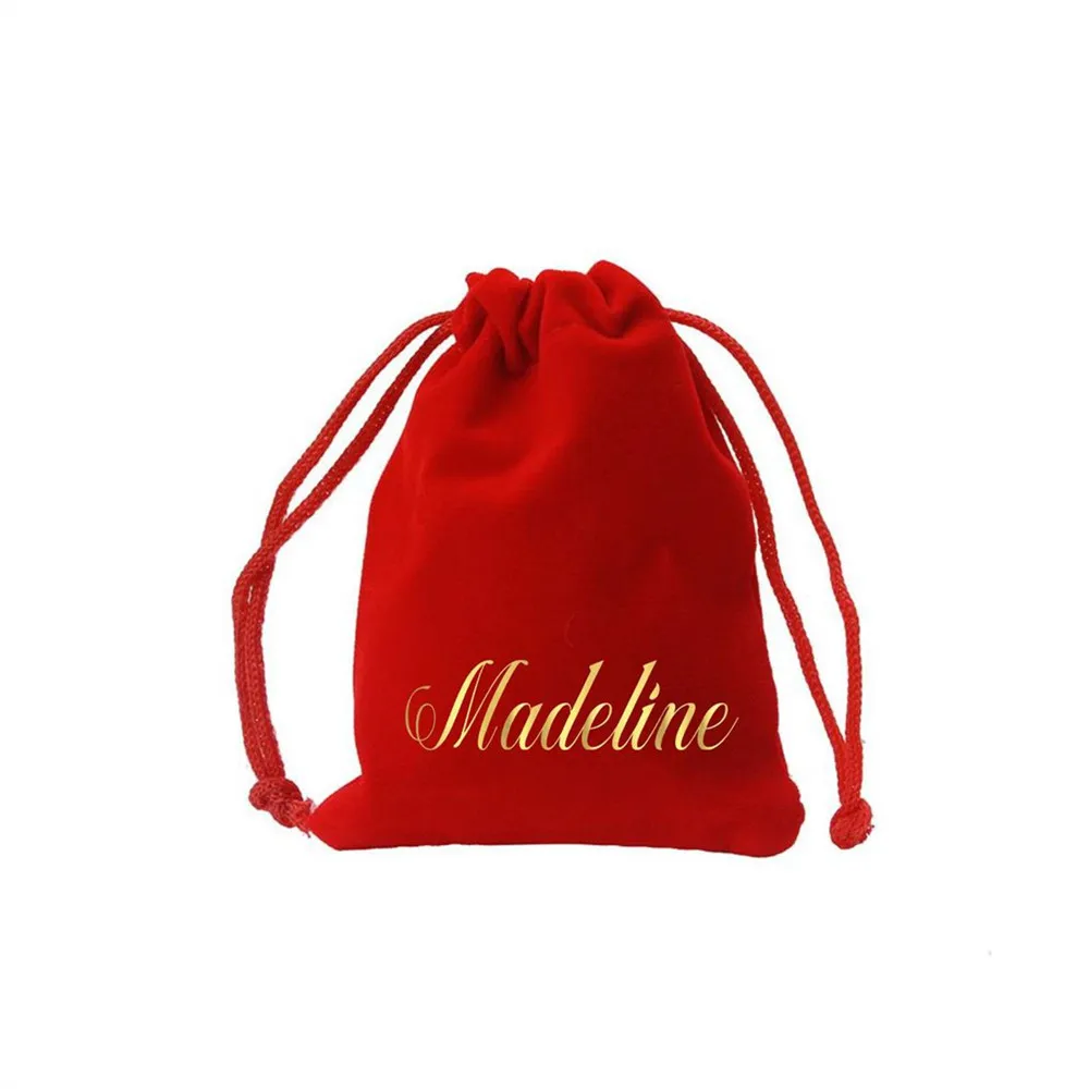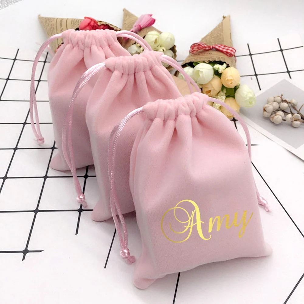 10 шт.лот персонализированные мешочки для ювелирных изделий с золотым принтом имени ожерелья кольца Органайзер сумка мягкие бархатные сумки для упаковки ювелирных изделий