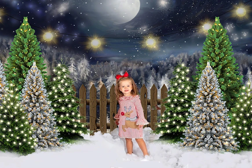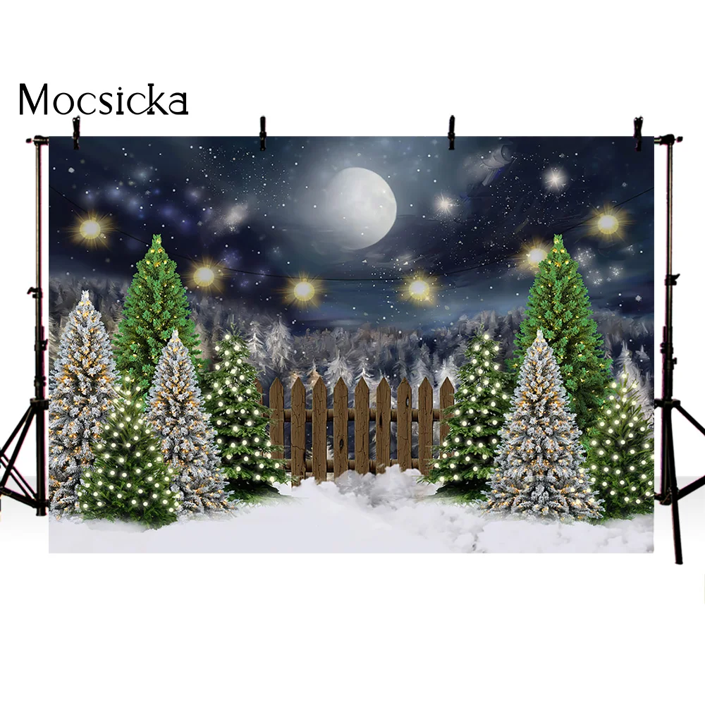 Рождественская сосна елка фон для фотостудии полная луна ночь фотобудка фон студия Рождество Зима фотосессия