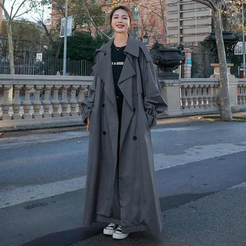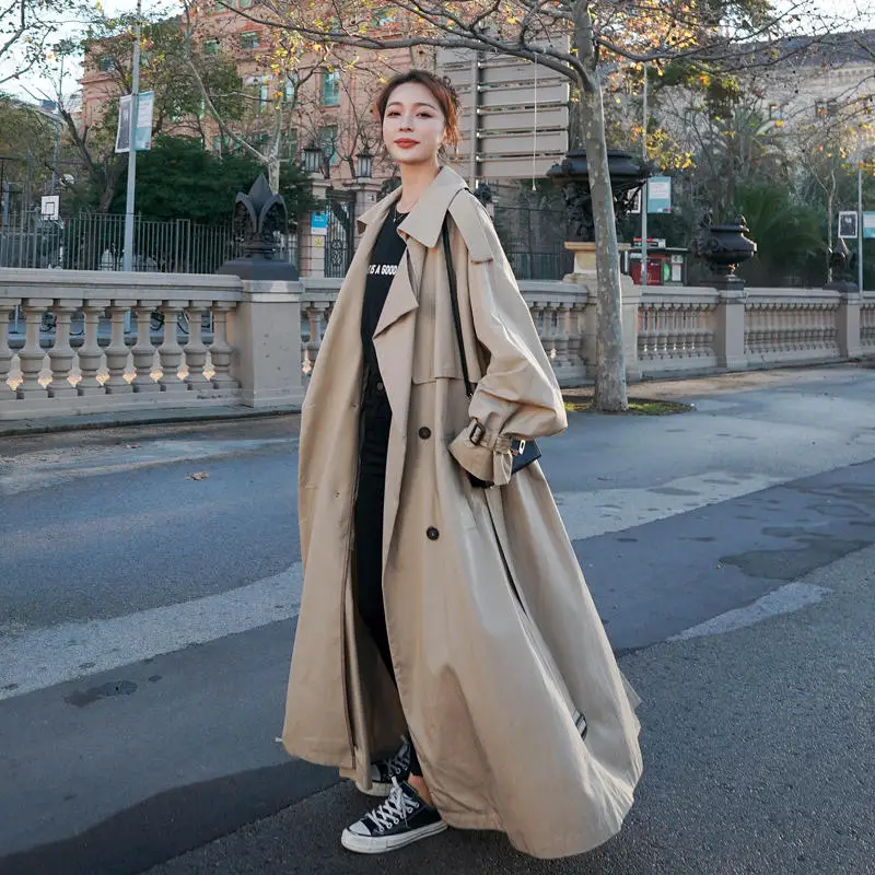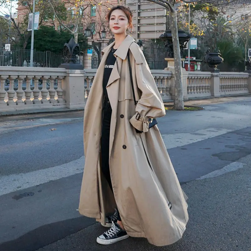 Винтажный Длинный плащ, женская одежда, Roupa Feminina, ветровка, женская, элегантная, офисная, для девушек, свободный, с длинным рукавом, однотонный, Женский Тренч, s, отложной воротник, верхняя одежда, Abrigo Mujer