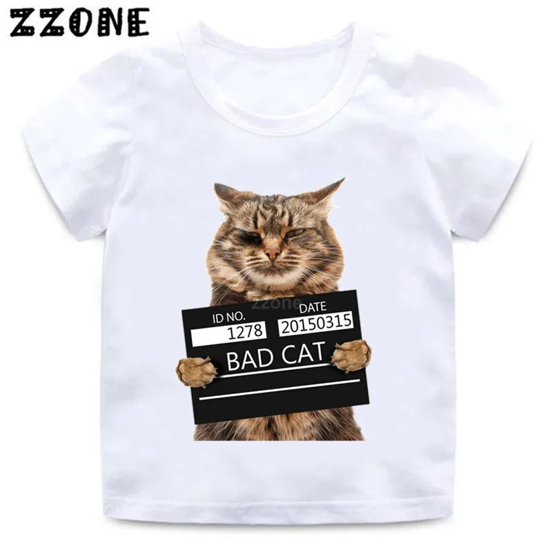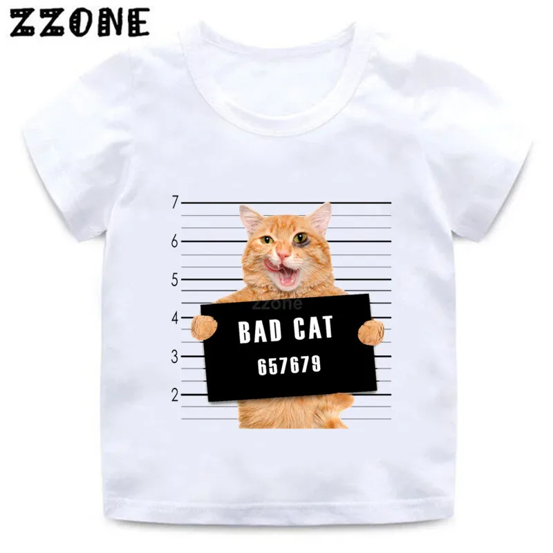 Детская забавная футболка с рисунком плохой кошки, летняя одежда с коротким рукавом для мальчиков и девочек, Повседневная футболка с милым рисунком животных, ooo2206