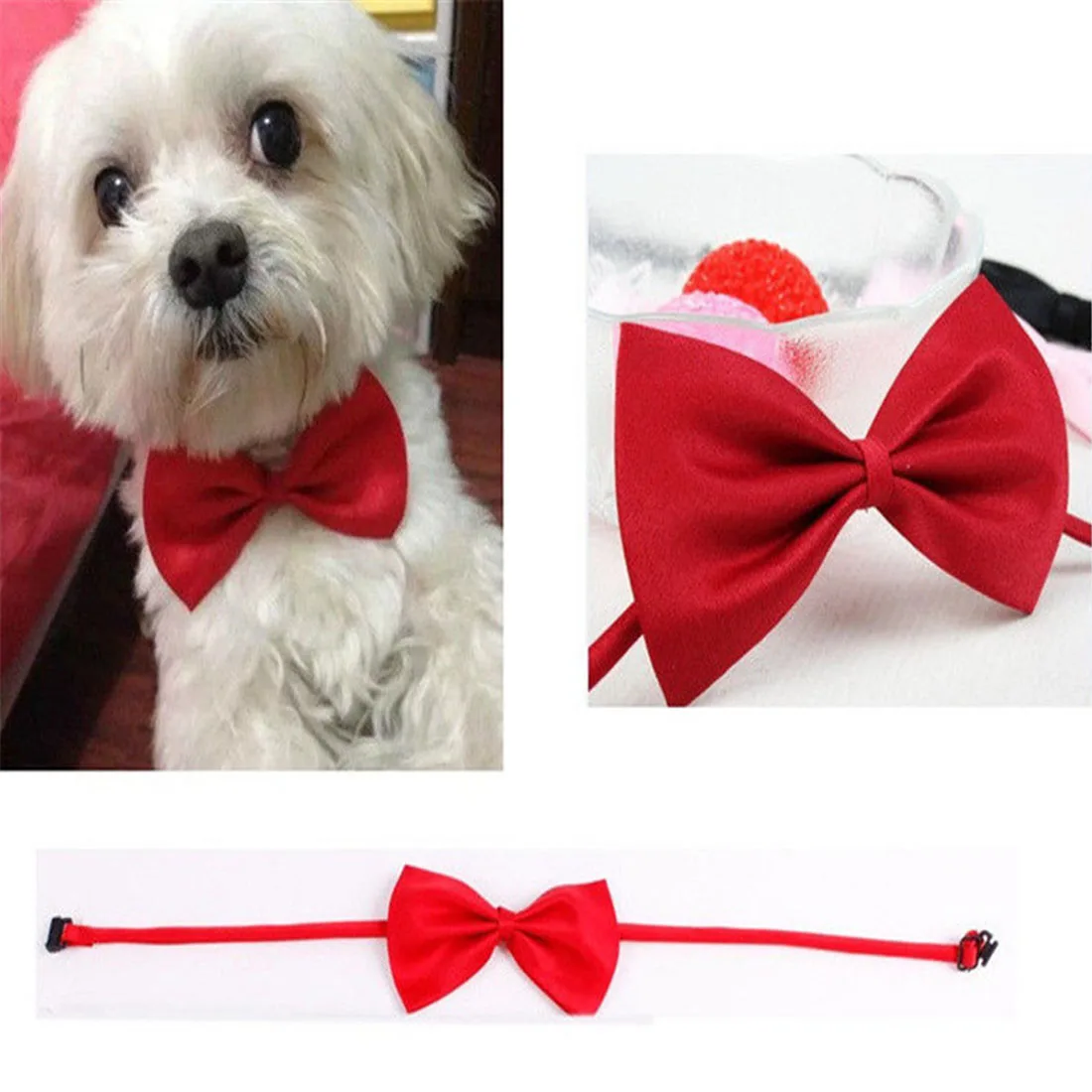 Характеристики: Галстук для собаки, милый свадебный аксессуар. Регулируемый дизайн, подходит для большинства маленьких собак одного размера. Этот галстук-бабочка очень милый и красивый для вашего питомца.