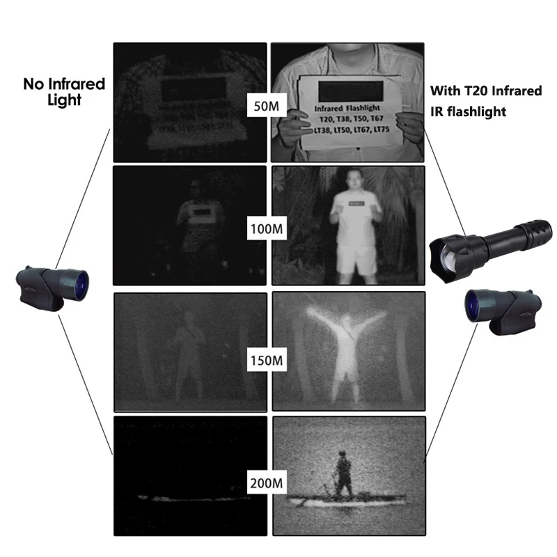 Невидимый ИК-светильник: IR 850NM-это не обычный светильник-вспышка с белым светодиодный светильник общего назначения. Вы не увидите ни один светильник голыми глазами (только маленький и слабый красный светодиодный свет, чтобы показать вам, что фонарь включен)-Излучает инфракрасный светильник с длиной волны 850 нм, подходит для использования с ночным видением, NVS, NVG DIY, камеры телефонов, монокулярных, очков и камеры, которые не блокируют инфракрасный светильник