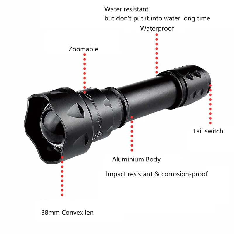 * 100% новый и высокое качество* Легко носить с ремешком* Водонепроницаемый дизайн (не для дайвинга, не помещайте его в воду)* Изготовлен из высококачественного алюминиевого сплава, и имеет очень прочную конструкцию* С помощью 7W 850nm инфракрасная светодиодная лампочка, можно найти очки ночного видения или камеру* Мощность: 1X18650 3,7-4,2 v (Батарея не прилагаются)* Также предназначен для установки на определенные ручные пистолеты, винтовки и дробовики с соответствующим монтажным оборудованием* Идеально подходит для ночных мероприятий, таких как охота* Режим: 1 (ВКЛ./ВЫКЛ.)* Линзы: стеклянные линзы 38 мм* Корпус Диаметр: 25,4 мм (дополнением к любому наряду 25,4 мм кольцо или крепление)* Цвет: черный* Вес: 180 г