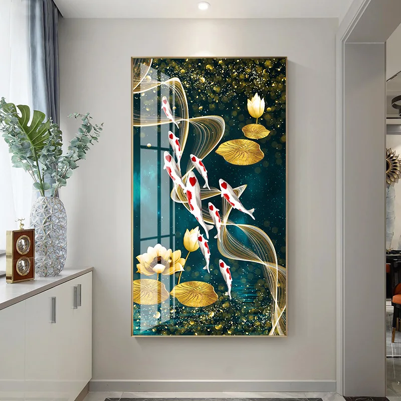 Настенная картина, HD печать, китайская абстрактная картина с девятью рыбами, пейзаж, картина маслом на холсте, постер для гостиной, современный декор