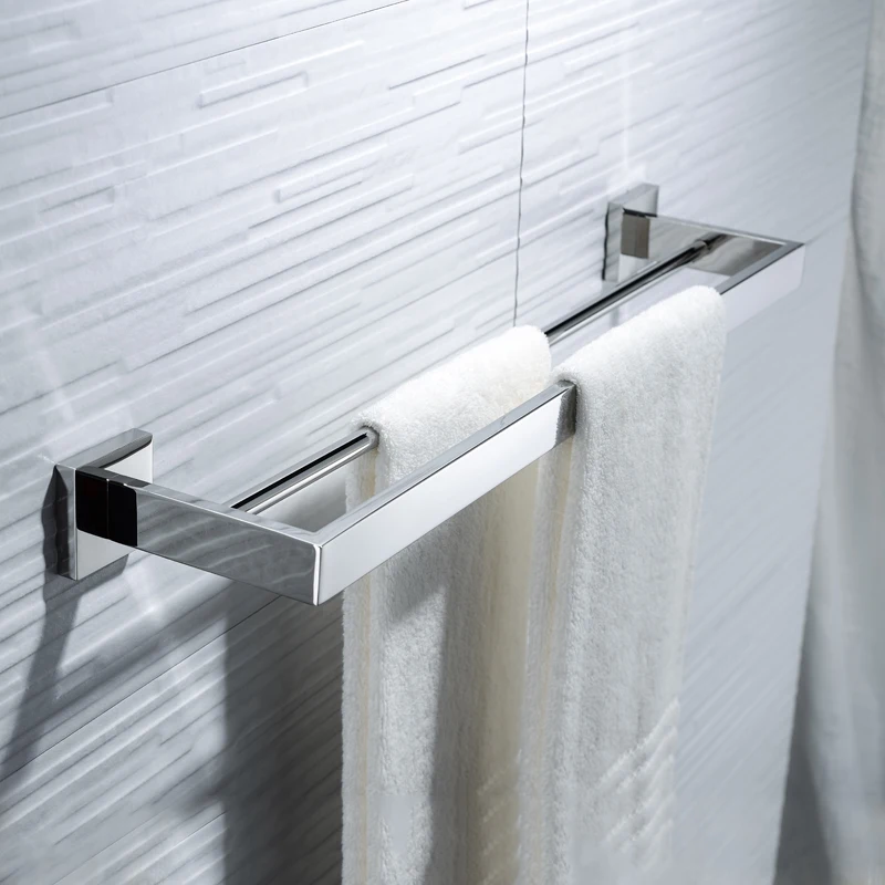 Двойная вешалка для полотенец, настенное крепление в гостиничном стиле для ванной комнаты, вешалка для полотенец из нержавеющей стали, хромированная отделка