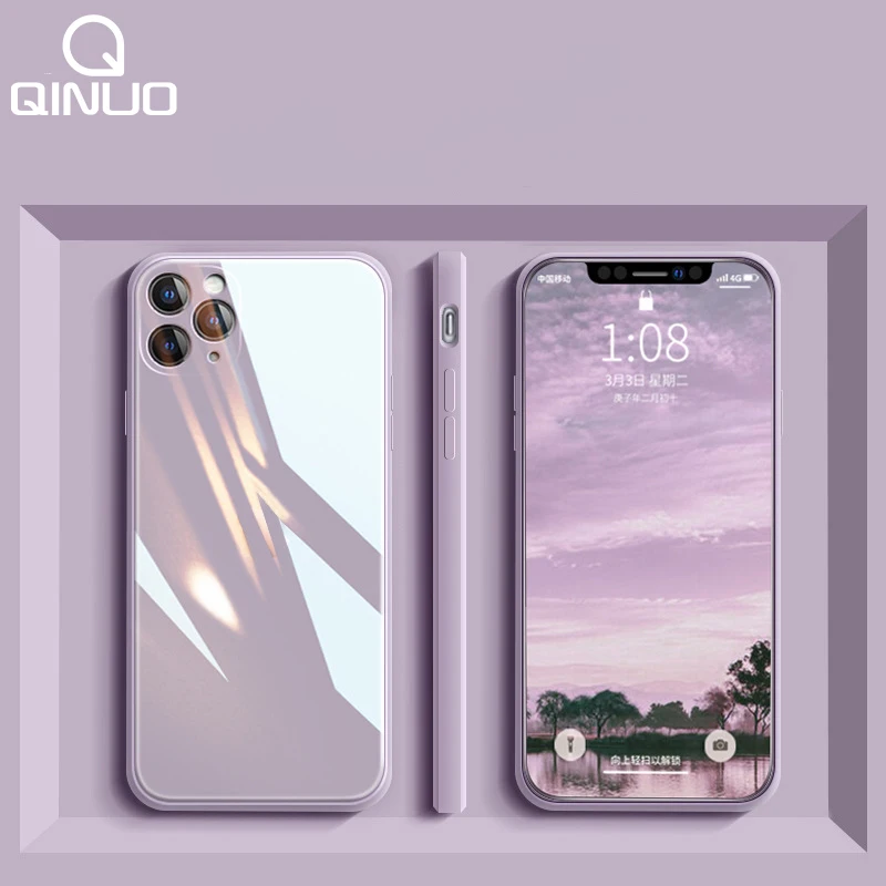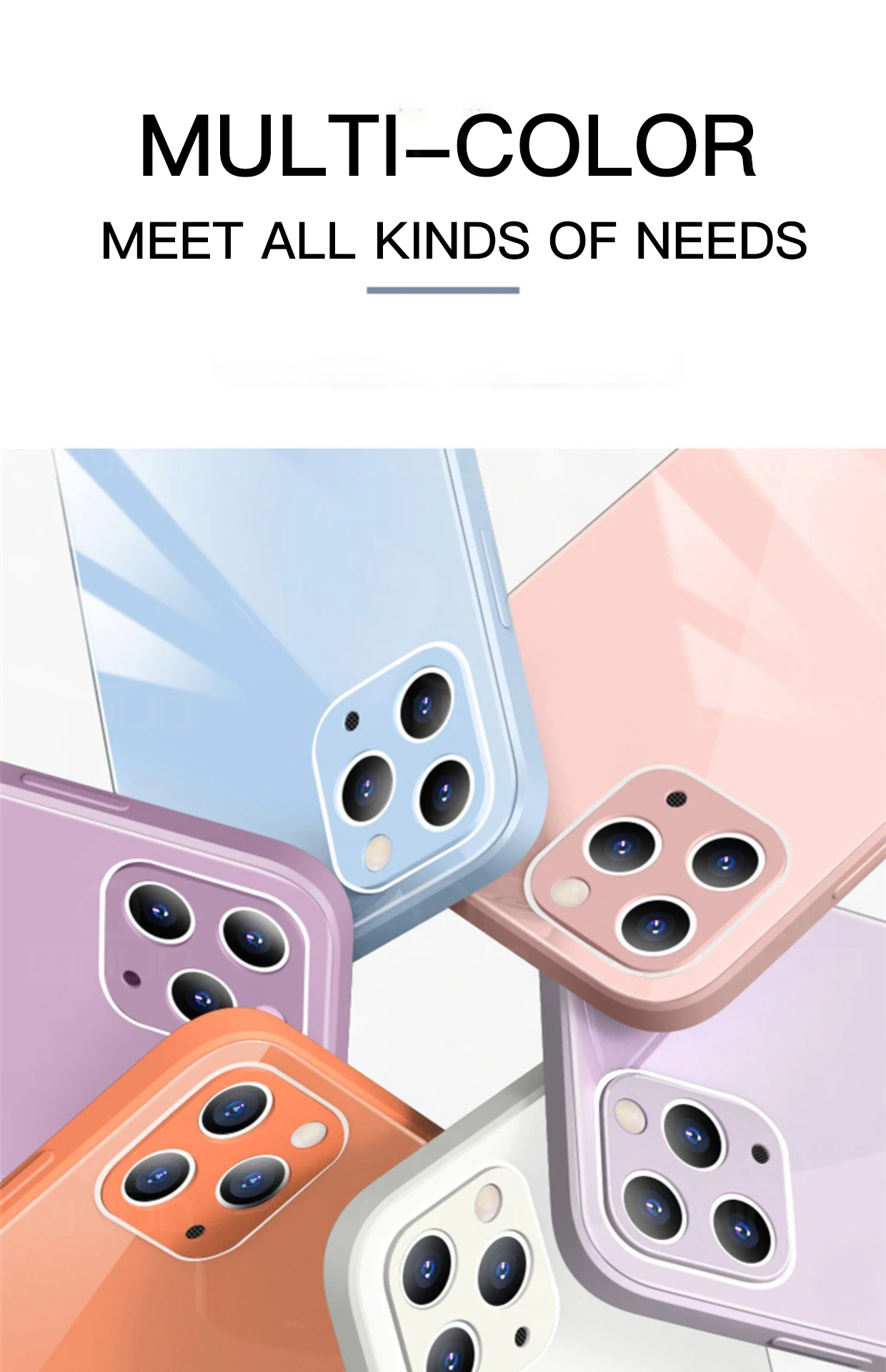 Прямоугольный чехол из закаленного стекла для iPhone 13, 11, 12 Mini Pro Max, XS, XR, X, 7, 8 Plus, SE2, оригинальный силиконовый защитный чехол ярких цветов
