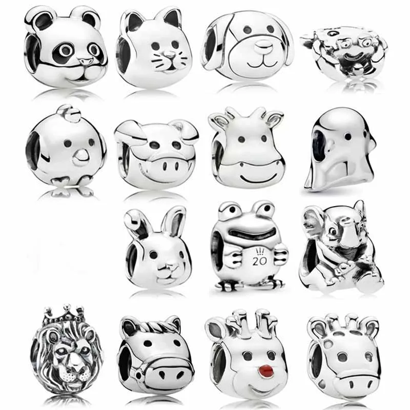 Бусина-Шарм сделай сам из серебра 925 пробы с животными, лягушкой, слоном, кошкой, пухом, медведем, пандой, курицей, крабом