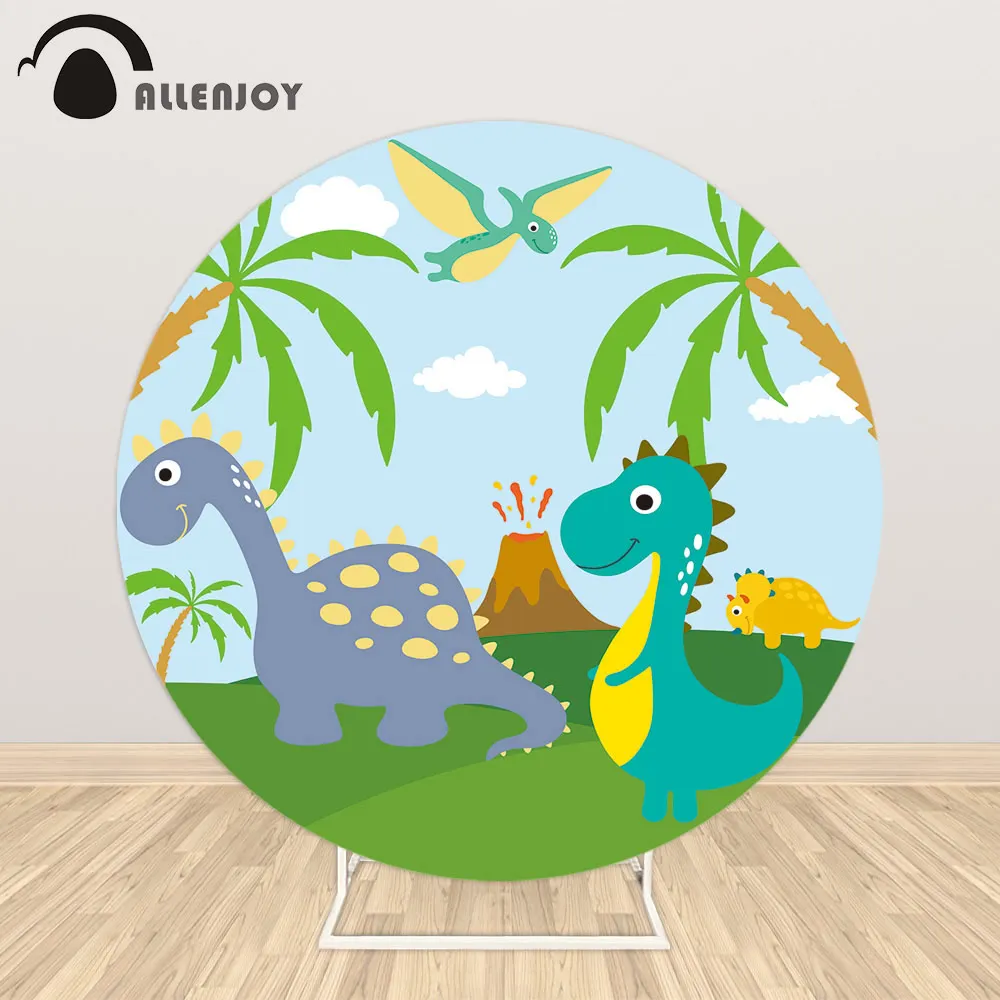 Allenjoy динозавр круглые фоны джунгли детский душ День Рождения фотография фон эластичные обои фотостудии