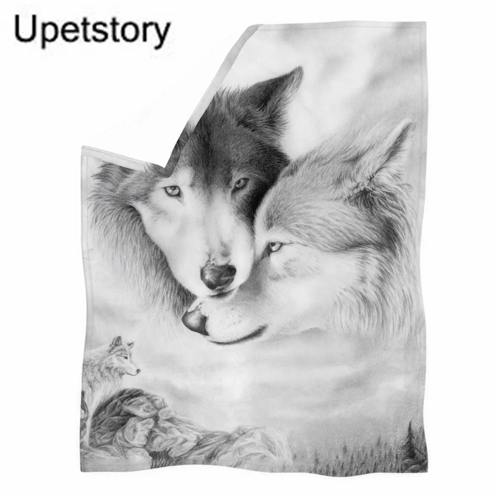 Upetstory одеяло для дивана с изображением волка, весеннее теплое одеяло, покрывало для кровати с изображением Луны и волка, мягкое покрывало из полиэстера для пикника и путешествий
